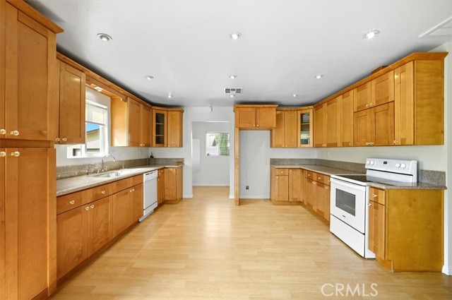 Welcome home to this beautifully maintained 2-bedroom, 1¼-bath residence in the heart of Upland. As you approach from 5th Avenue, you’ll be greeted by lush fruit trees—including avocado and grapefruit—framing the inviting entry. Step inside to discover a bright, open floor plan freshly painted throughout. The spacious living/family room features newer flooring and flows seamlessly into the updated kitchen, complete with modern cabinetry, a clean stove, dishwasher, and charming farm sink. Just off the kitchen, you’ll find a convenient laundry/mud room with an adjoining half bath. From there, step out to the side yard offering generous parking space and access to the two-car garage with an attached storage area. With over 1,000 sq. ft. of living space (per assessor) and a nearly 5,500 sq. ft. lot, there’s plenty of room to relax and entertain family and friends. Ideally located near churches, schools, restaurants, shopping, and major freeways, this home offers both comfort and convenience.