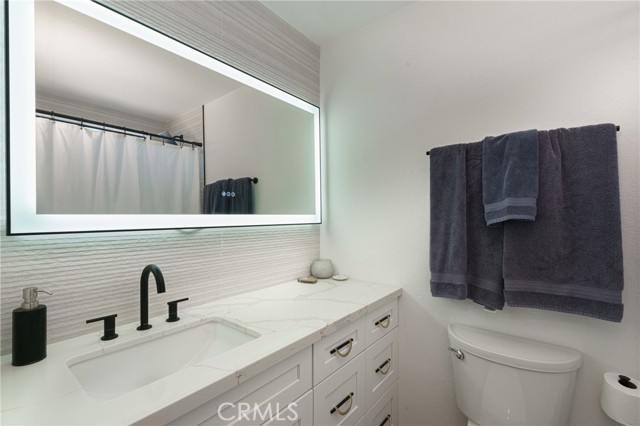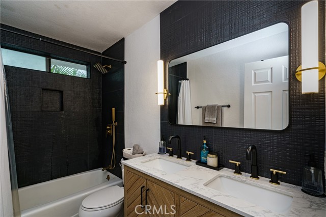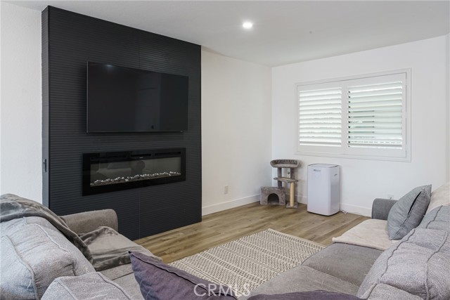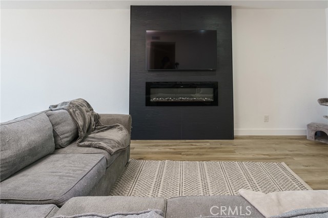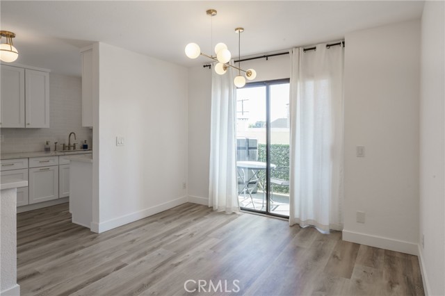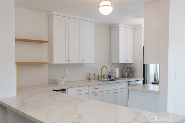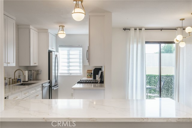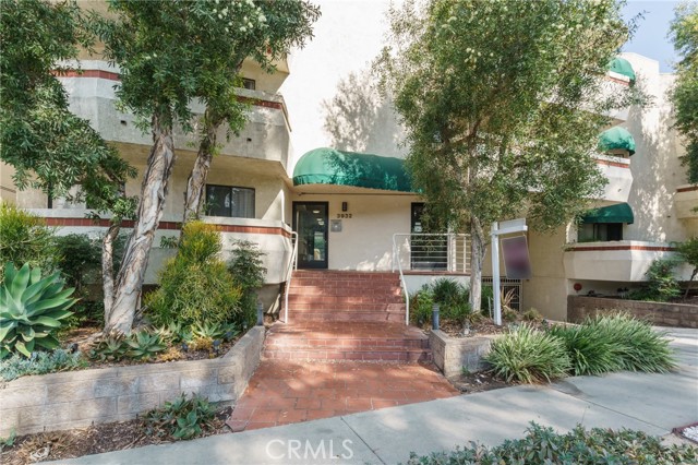 Stylish end-unit featuring a modern kitchen with quartz counters, white cabinetry, stainless GE appliances, and gold accents. Open floor plan with central AC/heat, LVT wood-look flooring, fresh paint, and updated doors/baseboards. Primary bedroom offers dual mirrored closets; guest suite with custom glass doors. Enjoy tree-top views from the balcony. Includes 2 secured tandem parking spaces with storage and elevator access. Prime Bixby Knolls location near shops, dining, parks, and easy freeway access.