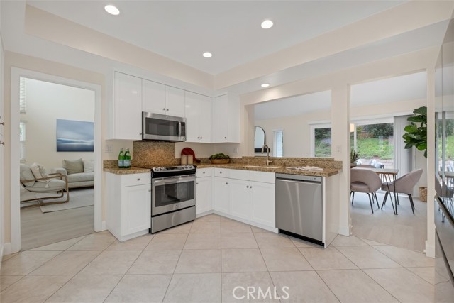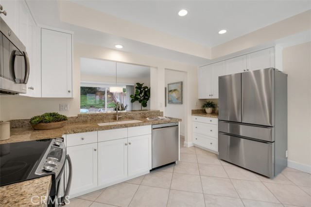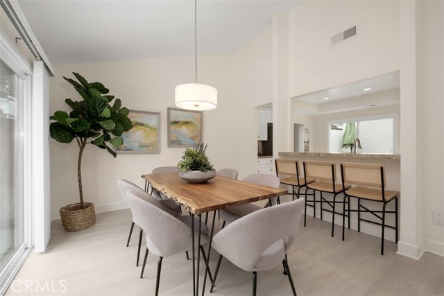 Welcome home to your Lake Forest single level home just across the street from the coveted Sun and Sail Club! This gorgeous, remodeled home offers 3 bedrooms and 2 bathrooms in a lovely, open, bright floor plan. Recently remodeled, it features light wood-look vinyl floors throughout, tall baseboards, high ceilings, and just-installed brand new windows with custom window coverings. The kitchen is spacious with granite counters, custom cabinetry, stainless steel appliances, and a brand new dishwasher with private adjoining atrium. The bathrooms have been remodeled with custom cabinetry, granite counters, chrome fixtures, lighting, and framed mirrors. The large primary suite has high ceilings, a huge walk in closet, as well as a private patio. The large wrap-around yard is perfect for entertaining with a peaceful grassy area and spacious patio for seating and dining. The location is private being on the end with a neighbor only on one side and provides for an extra large, gated yard. Enjoy this exceptional neighborhood with full access to the amazing Sun and Sail Club. There is even a trail at the end of the street for direct access without having to cross the street! The amenities at the Club are second to none. Enjoy a beautiful clubhouse, sports courts including basketball, pickleball, and tennis, pool, fitness center, clubs, classes, events, and more, all right on the Lake! Make this your new home today!