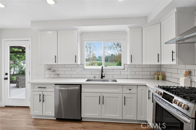 Welcome to 24282 Twig Street, Lake Forest, a stunningly remodeled Cape Cod-style retreat that perfectly blends elegance, comfort, and modern living. Tucked away in a prime location with no homes behind and only the serene backdrop of a lush green park, this beautifully redesigned residence offers both privacy and picturesque views. Featuring 5 spacious bedrooms and 3 full bathrooms across 2,152 sq. ft. of living space on a generous 7,500 sq. ft. lot, this home is designed to impress. Inside, you'll find wood flooring throughout, a cozy fireplace, and an inviting open-concept layout ideal for entertaining. The gourmet kitchen is the heart of the home, showcasing an oversized wrap-around island, quartz countertops, white shaker cabinetry, stainless steel appliances, vented hood, pantry, and a farmhouse sink with stunning views of the park. An attached 2-car garage, thoughtful upgrades, and timeless coastal-inspired finishes complete this move-in-ready gem. Experience the best of Lake Forest living, modern luxury, a peaceful setting, and a home that truly stands out.