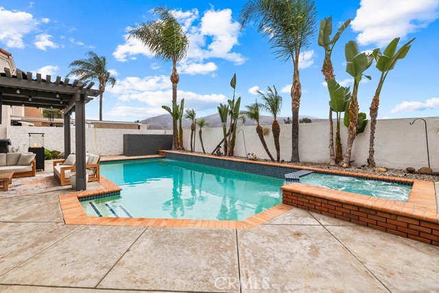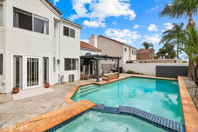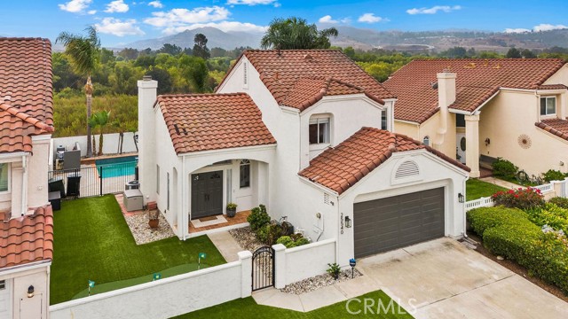 Welcome to this beautifully upgraded home in Villa Del Rio. Upon arrival, you are welcomed through the gated front yard and into the home through inviting double doors. As you enter the home, you are greeted by a light and bright living room with vaulted ceilings, cozy fireplace and modern vinyl flooring throughout. The kitchen was recently remodeled with new soft-close cabinetry and quartz countertops. The dining area features beautiful built-in cabinetry with ample storage space. Downstairs, you will also find the guest powder bathroom. Upstairs, you will enjoy the newly remodeled primary suite with dual sinks, shower, and a spacious walk-in closet. Picturesque views and plenty of natural light surround this room. Down the hall, there are two additional bedrooms and a full bathroom. Enjoy southern California living year-round, from the comfort of your backyard, with extra privacy and no neighbors behind. This home is an entertainer’s dream with a private pool and spa and endless hillside views! The low maintenance yard includes newer turf, hardscape, and even a putting green! Attached, two-car direct access garage with laundry area. Located near highly rated schools and convenient freeway access. Schedule your private showing today!