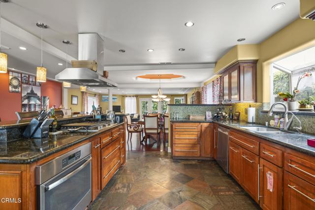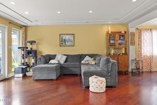 Beautiful 4-Bedroom Home Near Parks, Beaches, and Shopping! This spacious home is within walking distance to Camino Real Park & Dog Park, Pacific View Mall, and beaches. Convenient access to the 126 and 101 freeways makes commuting easy. The open floor plan features a large gourmet kitchen with ample cabinets and granite countertops, perfect for entertaining. French doors lead to a covered raised deck and a stamped concrete patio with sitting areas, ideal for outdoor gatherings. The lush yard offers privacy and greenery. The primary bedroom has an attached bathroom with a walk-in shower. The second full bathroom includes an oversized tub with a shower and ceramic tile. This home offers a blend of comfort, style, and outdoor living in a prime location. A must-see!
