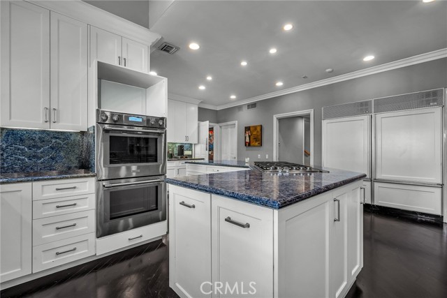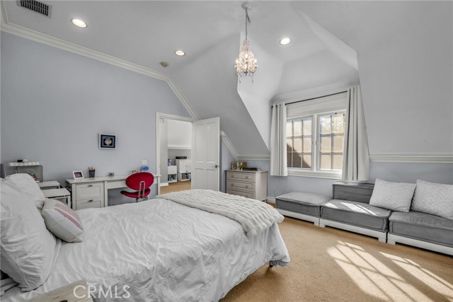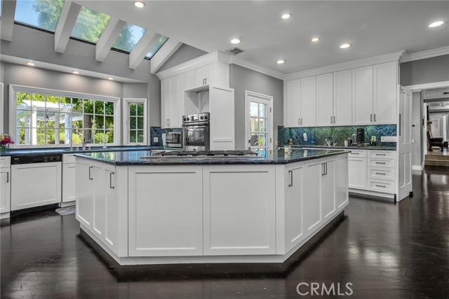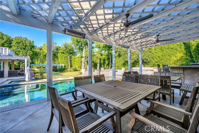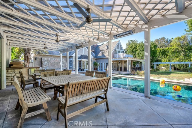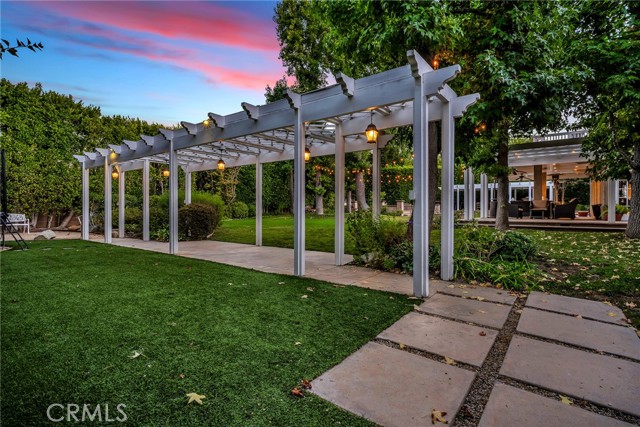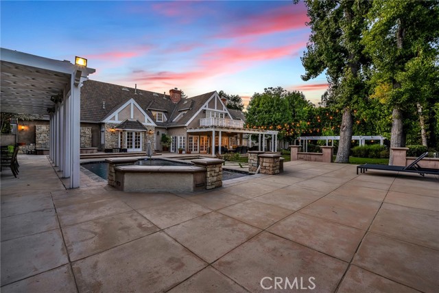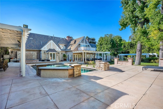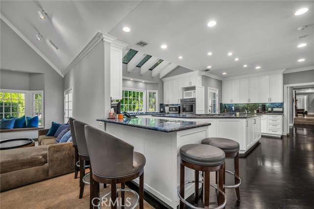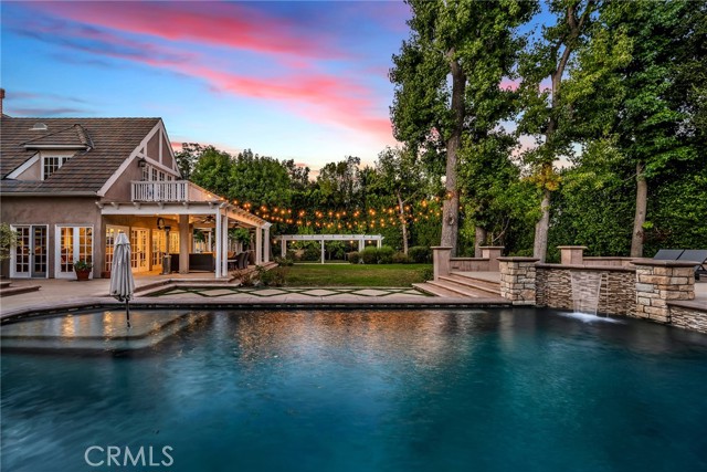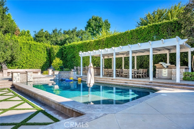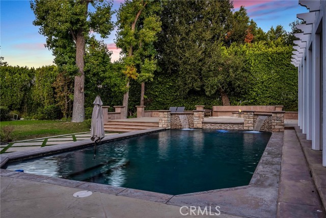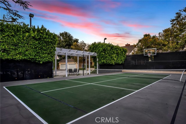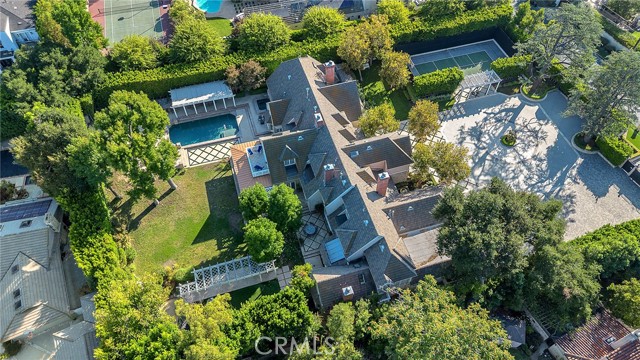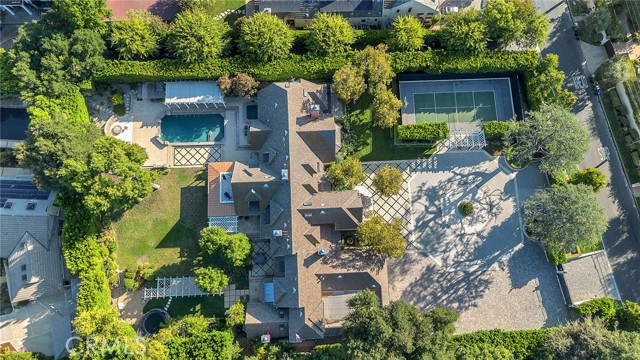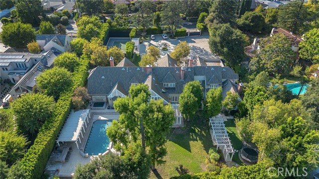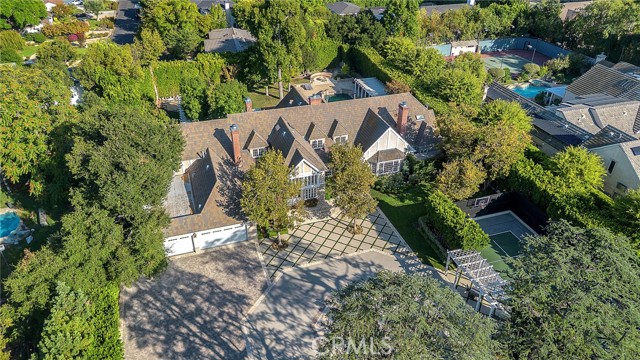 Welcome to this stunning south-of-the-boulevard gated estate, sitting on over one flat acre in the heart of Encino. As the dramatic gates open, you’re greeted by a 30-car cobblestone motor court that sets the tone for this 9,200 sq. ft. residence. To the south, you’ll find a lit sports court striped for pickleball — the perfect spot for daily matches and weekend fun. The front-facing four-car garage offers abundant storage space, attic access, and is prepped for EV charging. Step through the grand glass entry doors into an entertainer’s dream home, designed for large gatherings, holidays, and unforgettable parties. The main level offers a huge sunken dining room, a warm and cozy library, a formal living room, and a lively bar room — all opening to the backyard for a seamless indoor-outdoor experience. The chef’s kitchen boasts soaring ceilings, top-of-the-line stainless steel appliances, two sub-zero refrigerators and freezers paneled to match the kitchen, and a connected family room, perfect for homework, game nights, and casual hangouts. The laundry area leads to a home office, full bathroom, and guest quarters, ideal for long-term visitors or staff accommodations. The 1,600 sq. ft. primary suite is a retreat in itself, with high-pitched ceilings, a separate sitting room or gym/nursery, a spa-like bathroom with a sunken tub, and a spacious walk-in closet. Just outside the suite is a 1,300-bottle temperature-controlled wine room, accessible from both inside and outside the home. Upstairs, a dramatic staircase leads to three generous secondary bedrooms, each with an en-suite bath and walk-in closet. The backyard is an entertainer’s paradise, offering multiple gathering areas for morning coffee or evening cocktails, a covered BBQ and dining space, a sparkling pool, and a separate spa with a dramatic water feature — all surrounded by lush greenery. This property includes security cameras inside and out as well as security/motion lights all throughout the property. Also included is a Puroserve soft water system. If you’ve dreamt of living in a true Encino estate, this is your rare opportunity to own one of the neighborhood’s most impressive properties.
