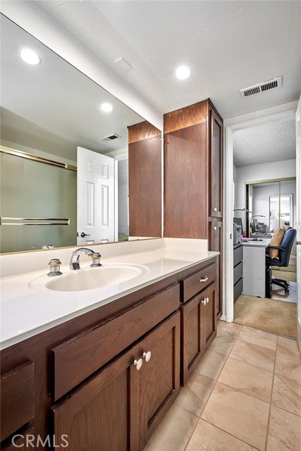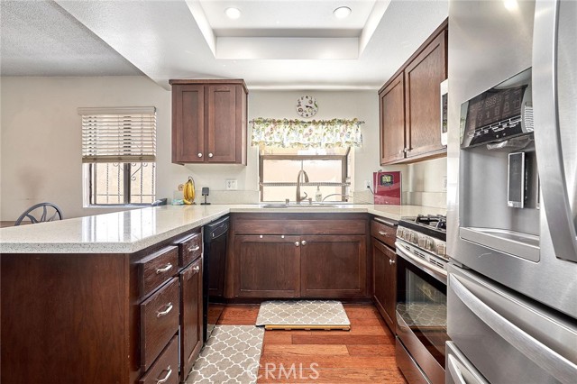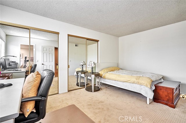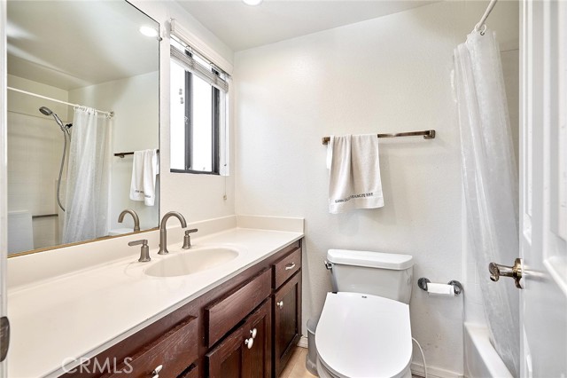 This is a rare opportunity to own a spacious 2 bedroom, 2.5 bathroom condo in a cozy community with a prime location. Upon entering, the living room greets you with hardwood floors, a brick gas-burning fireplace, modern wet bar, and recessed lighting. The kitchen boasts plenty of cabinet and counter space, a bay window, and a spacious pantry. Just around the corner is a well-situated half bathroom, and large sliding doors off the living room provide natural light and access to the enclosed patio for outdoor relaxation. Upstairs, the dual primary bedrooms afford privacy and comfort, each with its own ensuite full bathroom and double closet. The laundry room is conveniently situated upstairs between the bedrooms. Downstairs is an attached oversized 2-car garage with additional storage space. This 20-unit community has secured gated entry along with a community pool and spa. Enjoy convenient living located just steps from a park, freeway access, and major retail shopping centers.