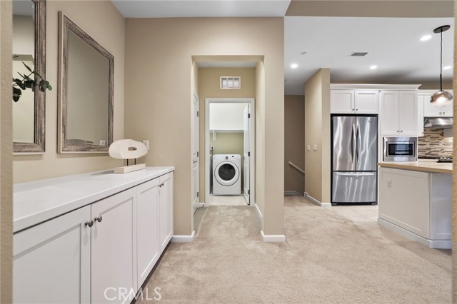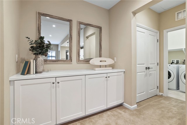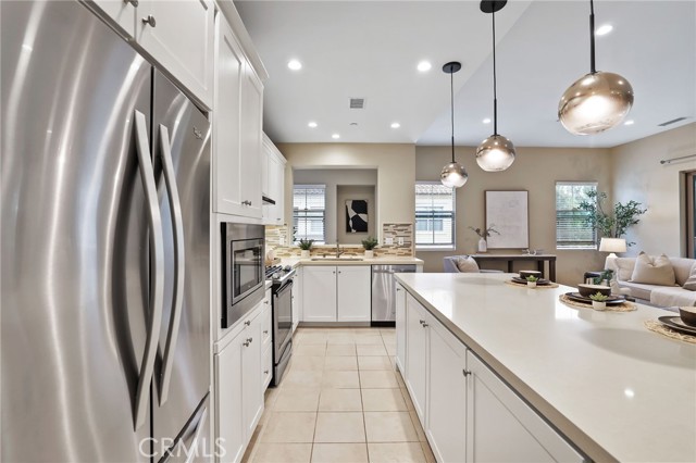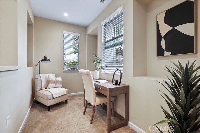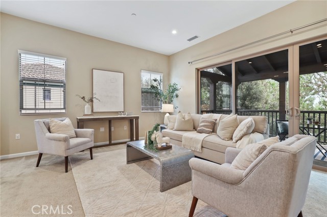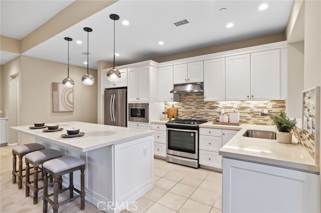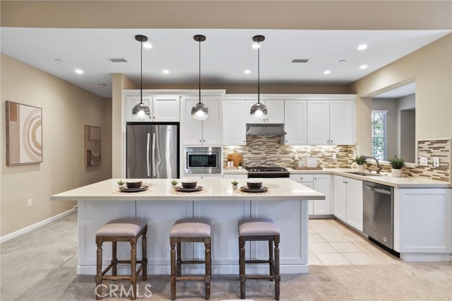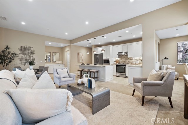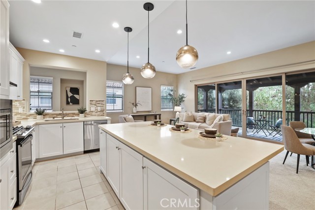 This stylish residence combines comfort, functionality, and natural light throughout. The entry welcomes you with a warm foyer leading upstairs to a bright open concept living area featuring a spacious great room, dining area, and modern kitchen. The gourmet kitchen showcases a large center island, quartz countertops, stainless steel appliances, custom backsplash, and pendant lighting, all flowing seamlessly into the living and dining spaces. A sliding glass door opens to an oversized covered balcony surrounded by greenery, perfect for morning coffee or evening relaxation. A versatile den provides the perfect space for a home office or quiet reading nook. The home offers two comfortable bedrooms and two full bathrooms. The primary suite features multiple windows, a walk-in closet, and a spa-inspired bathroom with dual vanities and a glass-enclosed shower. The guest bedroom is equally inviting, with easy access to a full hallway bath. Eastwood Community is one of Irvines most popular Villages. Walk to acclaimed Eastwood Elementary School located within the Village, easy access to Jeffrey Open Space Trail, and Resort Style amenities for swim, play and picnic. Fantastic Walkability: Enjoy shopping and Dining at nearby Cypress Village Center, Woodbury Town Center, Orchard Hills, or Irvine Spectrum, all just minutes away. Easy access to freeway. Don't miss the opportunity!