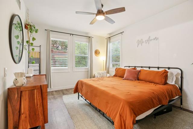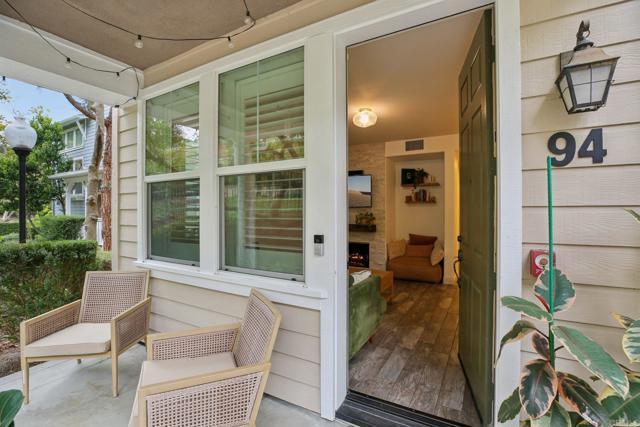 Beautifully updated corner-unit townhome in the Valmont community of Terramor Village. Peacefully situated with open space behind and no direct rear neighbors, offering exceptional privacy.This bright and inviting home features porcelain tile flooring, plantation shutters, and a cozy fireplace with a custom stone surround and mantle. The remodeled kitchen offers quartz countertops, stainless steel appliances, modern cabinetry, and plenty of storage. Fresh interior paint downstairs with new carpet on the stairs and upper level. The primary suite includes a private balcony overlooking the greenbelt, built-in bookshelf, and a large ensuite with dual sinks, quartz countertops, soaking tub, separate shower, and walk-in closet. The secondary bedroom offers vaulted ceilings, custom wainscoting, and a spacious closet. Bathrooms have been updated with quartz counters and tile flooring, and the home features luxury vinyl plank flooring throughout main living areas and bedrooms. Convenient upstairs laundry area with washer and dryer included. Additional upgrades include a smart thermostat, Ring doorbell, and an attached two-car garage with overhead storage racks, newer hot water heater, and an updated A/C unit. Community amenities include a pool, spa/hot tub, tennis courts, and nearby biking and hiking trails. Great location close to shopping, dining, schools, and major freeways.