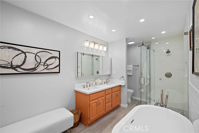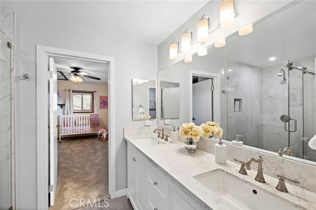 Picturesque property, located on a quiet cul-de-sac in North Glendora is for sale for the first time in 38 years. Great curb appeal with a grand entry is this spacious & remodeled tri level home. Offering 4 bedrooms, 2.5 baths and 3,562 sq ft of living space, on an expansive 12,156 sq ft lot. Upon entering the front door you are welcomed by a cozy living room with gleaming hardwood floors & a wood burning fireplace. Cabinets & counter tops galore you have in the Gally Kitchen, double ovens, a 5 burner Induction electric cook top & stainless steel appliances, water filter system under the sink & a breakfast nook. A large dining area opens to a covered deck that is 41 X 12 made of Treks, where you can enjoy the city light view while you BBQ in a natural gas grill & entertain year around. You can oversee the expansive yard with plenty of room for children to play, prefect multi purpose activity pad for Pickleball, basketball etc. or to add a pool & spa. The Primary bedroom has a wall of closets & remodeled bathroom with a walk in shower, soaker bathtub, large mirror & stone countertops. Separated for privacy are 3 additional bedrooms & another remodeled bathroom with a large walk-in shower and nice vanity. There is another room that would be great for an office, sewing room or another bedroom.The large family room is located on the lower level with custom built-in bookcases & a very useful cupboard for more storage. Step down to another large room approx.400 sq ft that can be used as a home gym, offices, den or even turned into a theater. You can access the backyard from this level through the French doors to a concrete patio area with fruit trees, lush grass & block wall fence. Additional features include Centralized alarm & fire system, double pane windows, recessed lighting, crown moldings, upgraded electrical, newer carpets, ceiling fans & a 2-car oversize garage. There is a-paved driveway for 5 additional cars. This home features newly installed energy efficient solar panels & a plug for EV charging station that is paid for. Class A fireproof, composition roof was installed in 2020. Located in the coveted Glendora School District, Sandburg Jr. High, LaFetra Elementary School & close to St Lucy's Priory, Azusa Pacific University & Citrus College. You can enjoy the close proximity to the Glendora Village for great shopping, restaurants, Library, Finkbiner Park, bus line and Gold line. Priced to sell, this property won't last & is ready for the next family.