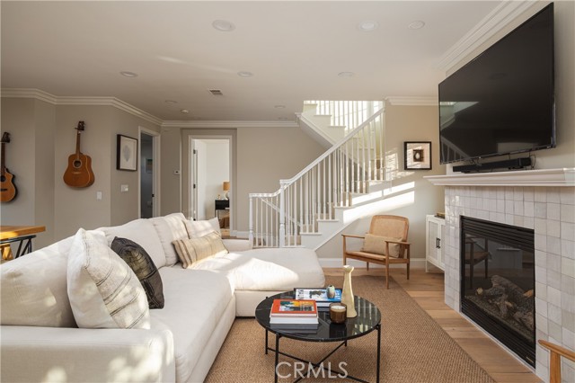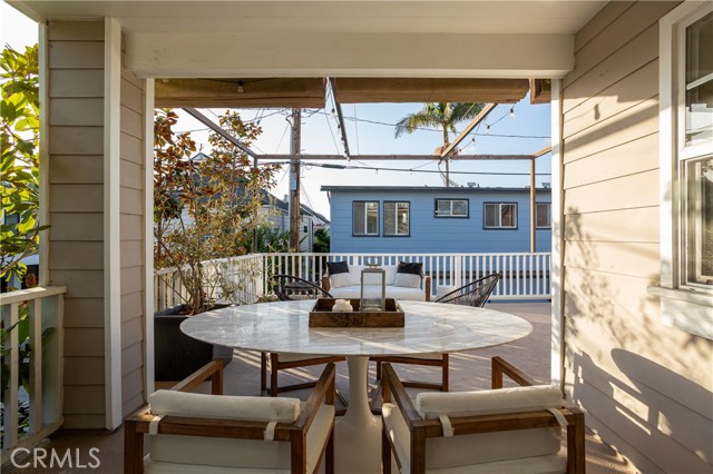 Located on the coveted Flower Streets of Corona del Mar, this stunning home sits on the ocean side of PCH, perfectly positioned in the heart of the Village. Rare in design, this rear unit lives like a front home, offering both privacy and space with its wide side alley, attached two-car garage, and two generous decks. Inside, three bedrooms and three en-suite baths blend modern luxury with coastal charm. The primary suite features a cozy fireplace, spa-inspired bath, and a private rooftop deck with sweeping views—your own sanctuary above the Village. Light pours through every space, accentuating the French oak floors and the bright, open-concept living area. The crisp white kitchen flows effortlessly into the great room and onto a lushly landscaped deck—complete with retractable cantilevers that transform it into an all-season entertaining retreat. No detail has been overlooked, with high-end finishes throughout, including Viking appliances and Carrera marble accents. Whether as your full-time residence or a refined coastal escape, this turn-key home captures the quintessential CDM lifestyle—vibrant, elegant, and distinctly inviting.
