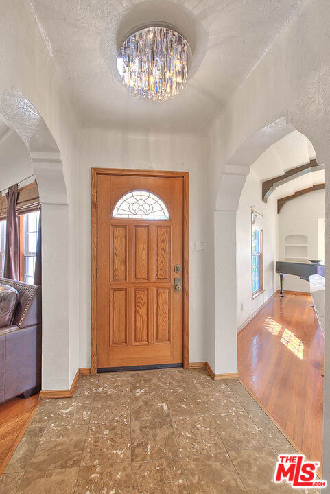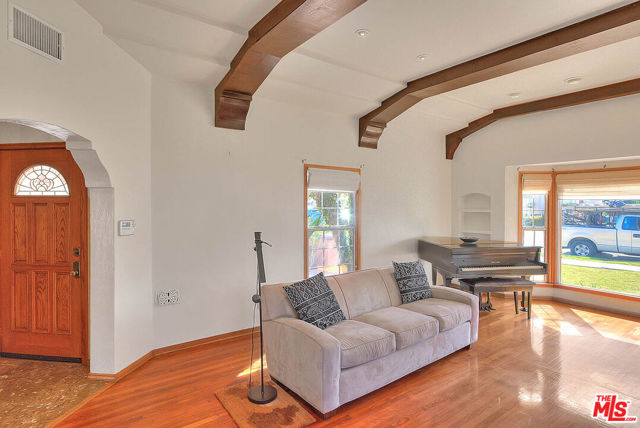 Welcome to this beautifully maintained 1936 Spanish-style gem in Morningside Park, offering timeless character, thoughtful upgrades, and exceptional versatility in one of Inglewood's most desirable neighborhoods. This Trust Sale presents a rare opportunity to own a lovingly cared-for home blending historic charm with modern amenitiessold as-is and ready for its next chapter.Step inside the 2-bedroom, 1.5-bath main home (approx. 1,503 sq. ft.) to find a classic foyer and center-hall floor plan, barreled and beamed ceilings, and original hardwood floors that exude warmth and architectural character. The inviting living room features a cozy fireplace, recessed lighting, and built-in speakers, while the adjacent den includes a ceiling fan and additional speakers for surround sound comfort.The remodeled galley kitchen is bright and functional with granite countertops, stainless steel appliancesincluding a gas cooktop, double wall oven, microwave, dishwasher, and refrigerator with water and ice makerplus a pantry and cozy breakfast room. The main bath offers a luxurious spa tub and steam shower with body sprays, while the primary bedroom suite includes a walk-in closet, ceiling fan, and double doors leading to the deck.Step outside to enjoy a spacious deck with a retractable awning, lighting, and an automatic roll-on/off cover, perfect for relaxing evenings or entertaining. The fenced grassy yard, small dog run, and long gated driveway leading to a detached two-car garage complete this inviting outdoor space.A detached guest house (approx. 500 sq. ft., not reflected in public records) adds valuable flexibility, featuring a 3/4 bath, fireplace, cabinetry, wood-beamed ceiling, two ceiling fans, a closet, and wall heaterideal for extended family, a home office, or creative studio.Additional highlights include recessed lighting throughout, dual-pane windows, central heat and air, and updated systems blending comfort and efficiency with classic style.Located minutes from SoFi Stadium, Intuit Dome, Hollywood Park Casino, shopping, dining, parks, and major freeways, this property combines Spanish architecture, modern upgrades, and a prime locationperfect for homeowners or investors alike.