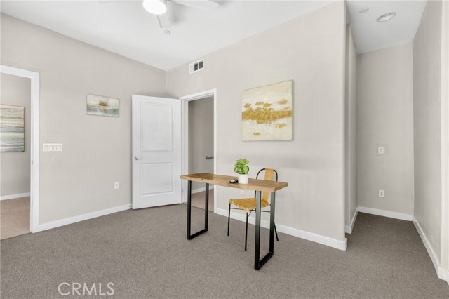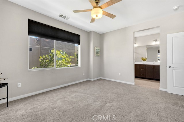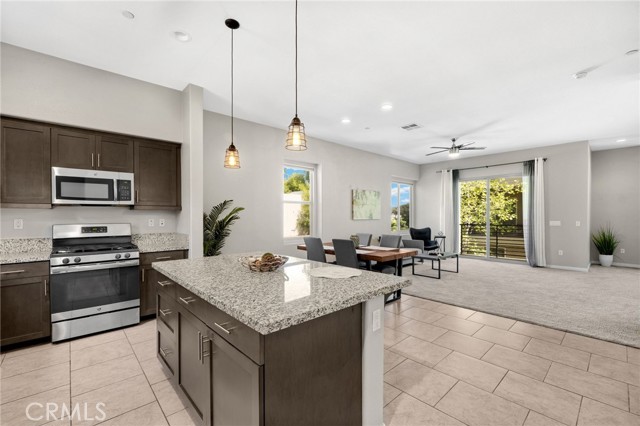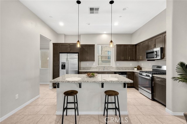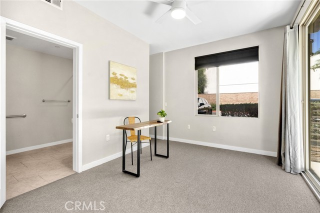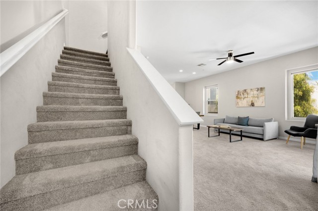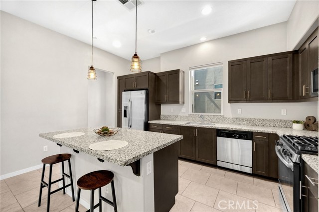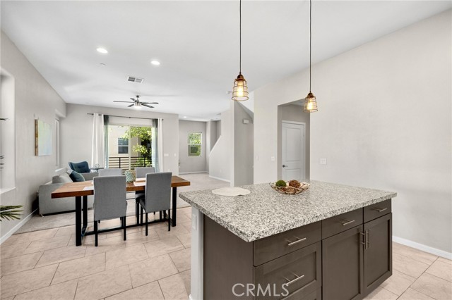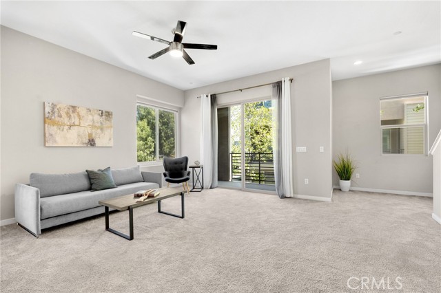 Enjoy modern, low-maintenance living in this stylish End-Unit condo built in 2017, located in the desirable Upland Central Live/Work community. The first floor features a private bedroom with ensuite bath, perfect for guests or a home office, plus a patio and direct access to the two car garage with a tankless water heater. The open-concept main level offers soaring ceilings, a bright living and dining area with balcony, ceiling fan, and a contemporary kitchen with quartz countertops, stainless steel appliances, pull-out shelving, walk-in pantry, island with breakfast bar, pendant lighting, and guest half bath. Upstairs, the spacious guest bedrooms and primary suite includes high ceilings, a walk-in closet and luxurious ensuite with dual sinks and quartz countertops. Additional highlights include ceiling fans throughout, custom window coverings, recessed lighting, upgraded tile floors and stone counters, custom paint, an upstairs laundry room, and access to gated community amenities such as a pool, BBQ areas, outdoor dining, comfortable seating areas and fire pits. All just minutes from Claremont Village, shopping, dining, top schools, and major freeways.