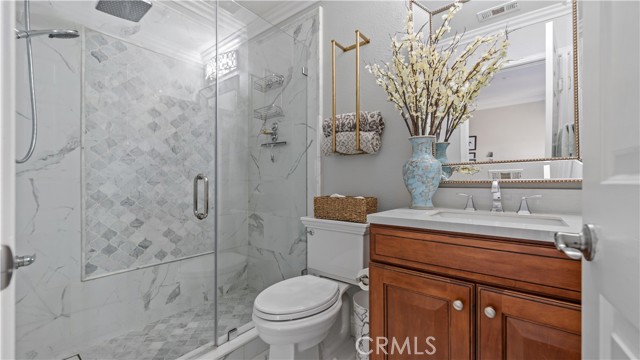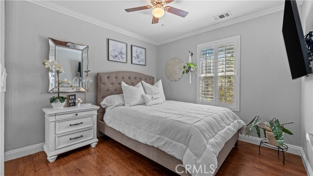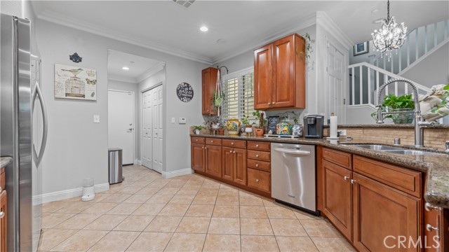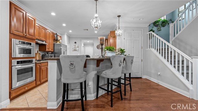 Welcome to this prestige, well-maintained Gem situated in a prime neighborhood of Rancho Cucamonga. Minutes from Victoria Gardens, this home has been remodeled throughout and features an open floor plan, 6 inch crown molding, 5 inch baseboards, a large kitchen with granite countertops, stainless steel appliances, and built-in microwave. You will enjoy plenty of natural sunlight due to the many windows and a downstairs sliding glass door which leads to a cozy patio equipped with an automatic sprinkler system. The upstairs, second bathroom has been recently renovated with marble shower tile, new toilet, and countertops. The master bedroom features a walk-in built-in closet with 12-inch deep drawers on gilders, an upgraded powder room, and pedestal sink. This beautiful home also has dimmable LED lighting and fire sprinklers. The upgraded two-car garage has epoxy flooring and its own private driveway allowing for two additional parking spaces. Association dues cover high-speed internet and water! Once you enter this property, you won't be able to miss the attention to detail that has taken place in each and every room. Don't miss out on this great opportunity, contact agent for a showing today!
