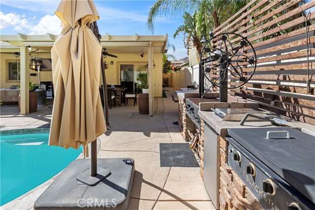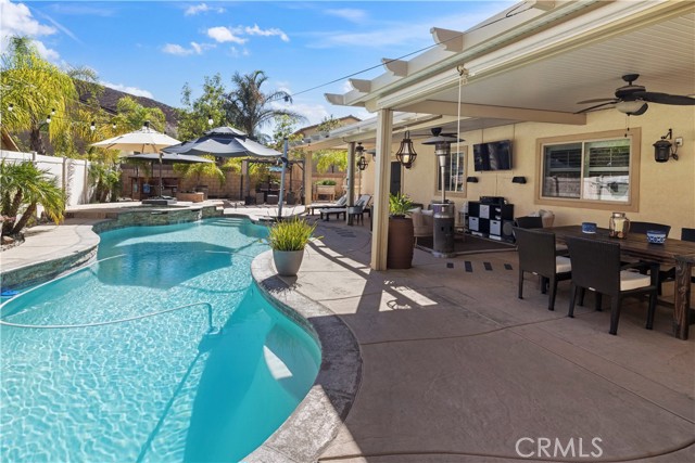 Resort-style living in the sought-after Cottonwood neighborhood of Canyon Hills! This beautifully maintained single-story home offers over 1,900 sq ft with 4 bedrooms and 2 baths. One bedroom has been converted into a cozy den/office with a fireplace but can easily convert back. The open floor plan connects the bright kitchen to the spacious family room—perfect for everyday living. Step into a resort-style backyard featuring a sparkling pool, spa, built-in BBQ, fire pit, and covered patio—ideal for entertaining or relaxing under the stars. Additional highlights include a 3-car garage, dedicated boat parking, and PAID-FOR solar for energy efficiency. Situated close to top-rated schools, parks, shopping, and freeway access—this home checks all the boxes for relaxed SoCal living with a luxury twist.