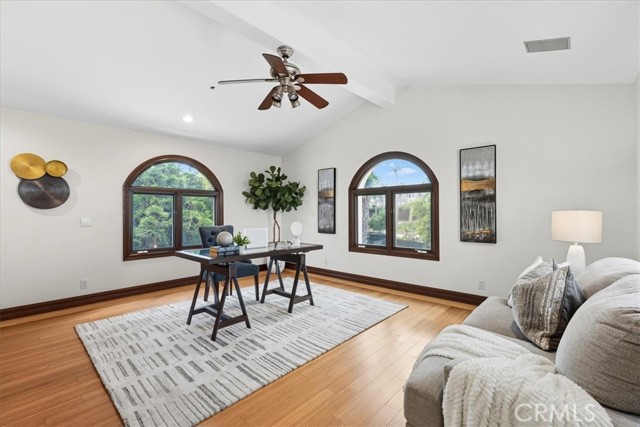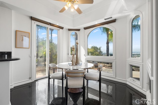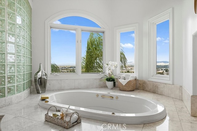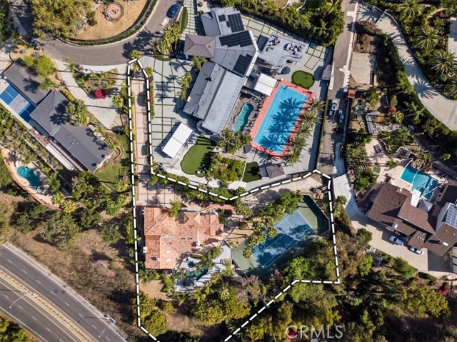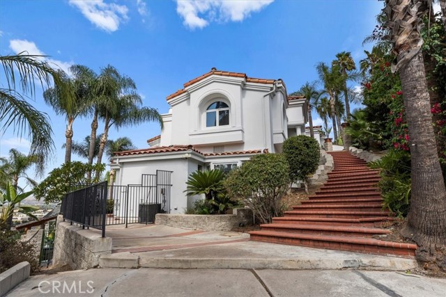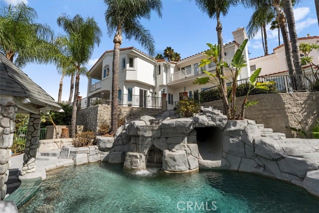 Experience panoramic canyon, mountain, city light, and reservoir views from nearly every window of this 5,340 sq. ft. gated estate in the coveted community of Peralta Hills. For the first time ever, this luxury estate is on the market! This 5-bedroom, 6-bathroom residence combines resort-style amenities with thoughtful design, creating the perfect balance of comfort and sophistication. Step through the front door and be greeted by dramatic living room views that set the tone for this remarkable home. The main level features a spacious bedroom currently being used as an office, inviting living room, and a luxurious primary suite with a private bath and sweeping vistas. Mid-level, a private bedroom with en-suite bath offers an ideal guest retreat. The lower level is designed for entertaining, boasting a chef’s kitchen, dining room, family/entertainment room with bar, laundry, and two additional bedrooms with en-suite baths. Numerous glass doors and windows open to outdoor patios, creating seamless indoor-outdoor living. Resort amenities include a private tennis court, sparkling pool with waterfall and waterslide, and multiple entertaining areas—all framed by the estate’s signature views. The back yard offers a front row view of the Anaheim Hills Fireworks Show in Peralta Park on the 4th of July. An attached 3-car garage and a designated space to add an elevator provide convenience and future flexibility. With its blend of dramatic architecture, functional layout, and outdoor paradise, this property captures the essence of luxury living in one of Orange County’s most exclusive enclaves. Close to dining, shopping, 91 & 55 freeways. 15 minutes from Disneyland, Honda Center, Angel's Stadium. 25 minutes to the beach. Don't miss this rare opportunity!