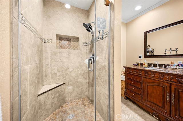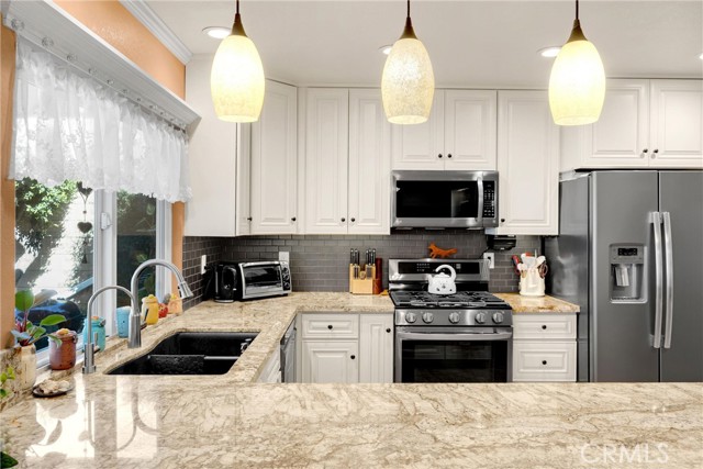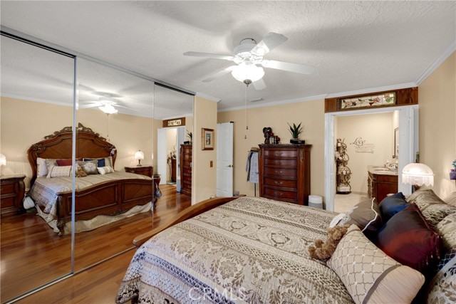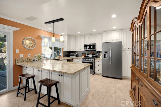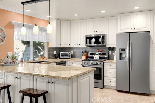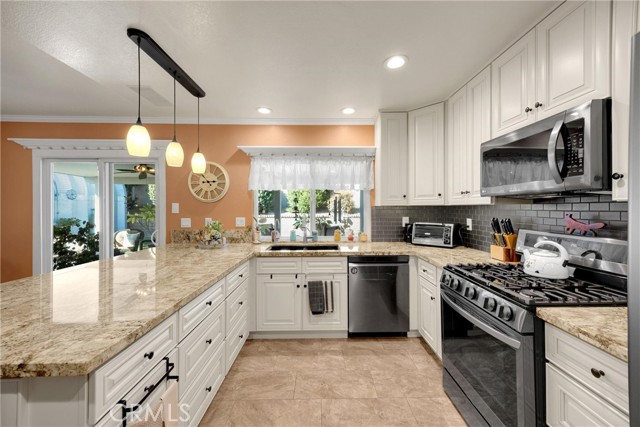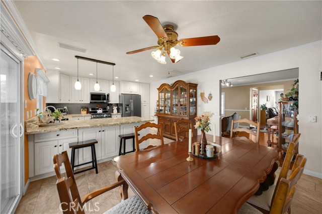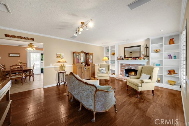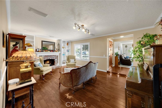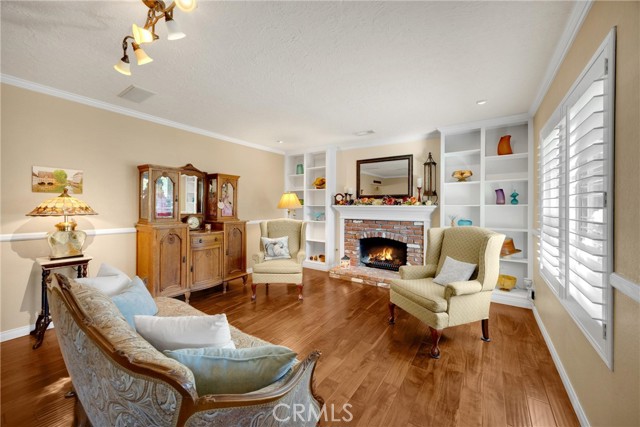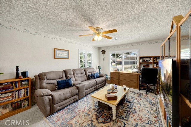 If you love woodworking, crafting or hobbies then this is the house for you! On site is a 12 foot high, 432 square foot fully enclosed workshop. The 18’x 24’ workshop has work benches, both 110 and 220 electrical outlets, 100 amp electrical sub panel, wall air conditioning unit and exhaust fan. A bonus addition to this already amazing 1617 square foot single story home. The main house offers 3 bedrooms, family room with plenty of space for a home office, a living room including a custom fireplace with wood mantle and bookcases. You will find upgrades of crown molding, wide baseboards and plantation shutters throughout the home. The main living space has engineered hardwood flooring. The kitchen has been thoughtfully remodeled with storage in mind. The cabinetry is soft closing in a color complementing every style. The subway tile backsplash accents the appliances and the refrigerator is included. The counters are a beautiful granite with oversized counter-bar. There is a whole house water softener and the kitchen features a reverse osmosis unit for delicious drinking water and ice cubes. The floors are oversize 12”x 24” porcelain tile. The bathrooms have been fully remodeled. The primary room has an ensuite bathroom with dual sinks and a spa-like walk in shower. There is a beautiful antique stained glass at the bath entry. Two additional bedrooms on opposite sides of the hallway offer privacy for all parties. The backyard is fantastic for entertaining. The fully covered patio allows you to enjoy nature no matter the weather. There is plenty of grass and greenery to create your own retreat. The side yard has sheds for maximum storage, the garage comes with built in cabinets and storage racks. The home includes a solar lease to offset your utility costs. You will find this home has been meticulously well taken care of and ready for you to call it home. Schedule your private tour today!