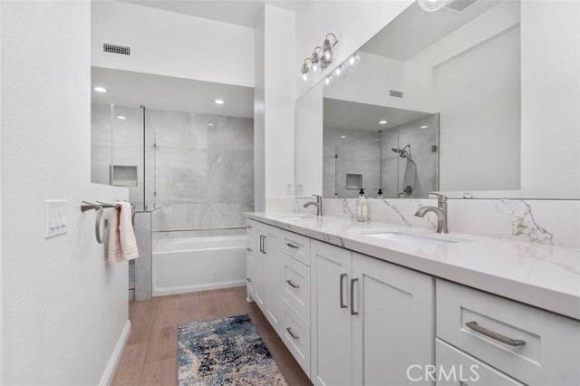 Step into coastal living made easy in this beautifully updated three-bedroom, four-bathroom townhome in Pacific Ranch, one of Huntington Beach’s most sought-after gated communities — where coastal charm meets everyday comfort. Offering the best of beachside living - just over a mile from the sand of Surf City USA - this home is truly move-in ready—every detail has been cared for. The kitchen, remodeled in 2016, features granite countertops, stainless steel appliances, soft-close cabinetry, and double ovens—perfect for cooking and gathering with friends. The main level also features two living areas, a gas fireplace, and a retro-chic wet bar, all brought together with stylish hardwood-look plank flooring. Upstairs, an airy landing with additional storage leads to two en suite bedrooms, each with vaulted ceilings. The primary suite feels like a private retreat with a 2022 remodeled spa-inspired bathroom complete with quartz counters, a soaking tub, a gorgeous walk-in shower, and a walk-in closet. Downstairs, a versatile third-room “getaway” with an en suite bath is ideal for guests, a play area, gym, Zoom room, or home office. Enjoy two outdoor patios for relaxing or entertaining, plus an attached two-car garage, a spacious indoor laundry room, and a new (2020) energy-efficient central HVAC system for year-round comfort. Smart-home features include a Ring doorbell and Wi-Fi-controlled thermostat. Within Pacific Ranch, tree-lined paths, three sparkling pools, and friendly neighbors create a true sense of community—complete with holiday decorations and summer strolls. The association maintains the roofs and windows, adding peace of mind to the resort-style amenities. Close to the beach, shopping, schools, and downtown, this home delivers the lifestyle you deserve. Whether you’re a first-time homeowner or looking for a turnkey beachside retreat or investment, this Pacific Ranch gem delivers comfort, convenience, and the Huntington Beach lifestyle you’ve been dreaming of.