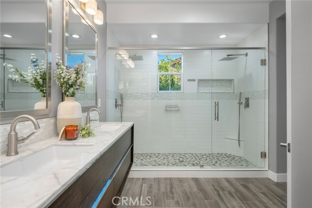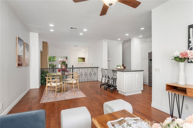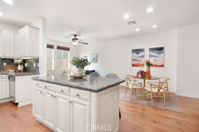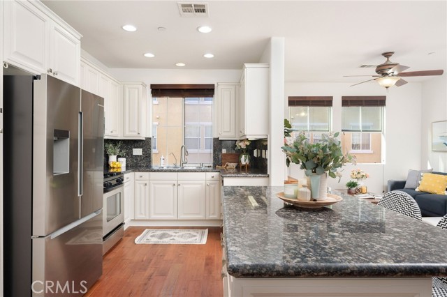 Tucked within the gated Tremont enclave of Serrano Heights, this beautiful townhouse blends modern comfort with everyday elegance. From the moment you step inside, you’re greeted by an airy formal living room with dramatic vaulted ceilings, a warm gas fireplace, engineered hardwood flooring, and sun-drenched windows that instantly make the space feel inviting. Continue into the heart of the home — a thoughtfully designed kitchen with granite countertops, stainless steel appliances, and a central island perfect for morning coffee or gathering with friends. The open layout flows effortlessly into a dining area ideal for dinner parties or family meals, creating the perfect balance between formality and ease. Upstairs, discover three spacious bedrooms and two and a half baths, including a serene primary suite complete with a spa-inspired ensuite bathroom, floating dual vanity with quartz countertops, a walk-in shower, and an expansive closet designed for organization and style. The laundry room is conveniently located on the same level, featuring built-in cabinetry for added everyday function. Two other bedrooms are located on the same floor. With direct-access two-car garage with extra storage, and thoughtful upgrades throughout, this home checks every box. The Tremont community offers manicured greenbelts, lush landscaping, and proximity to scenic Santiago Oaks and Fred Barrera Regional Parks, where miles of trails and natural beauty are just steps away. Residents here enjoy the comfort of a close-knit, well-maintained neighborhood—just a short walk to one of Orange County’s top-rated elementary schools. Offering sophistication, convenience, and connection all in one, this home isn’t just a place to live—it’s a lifestyle to be proud of!