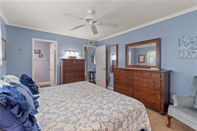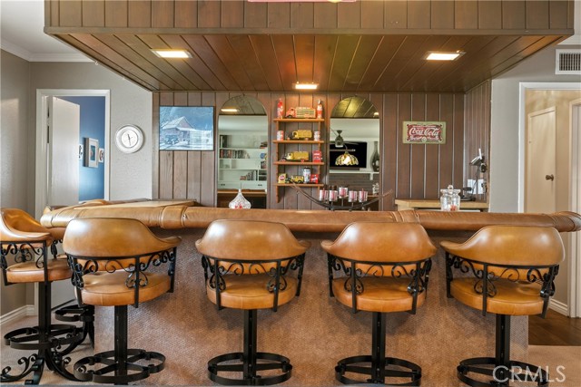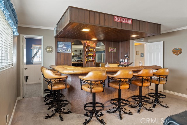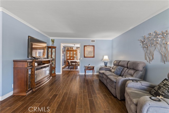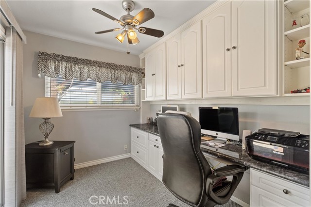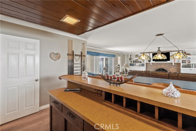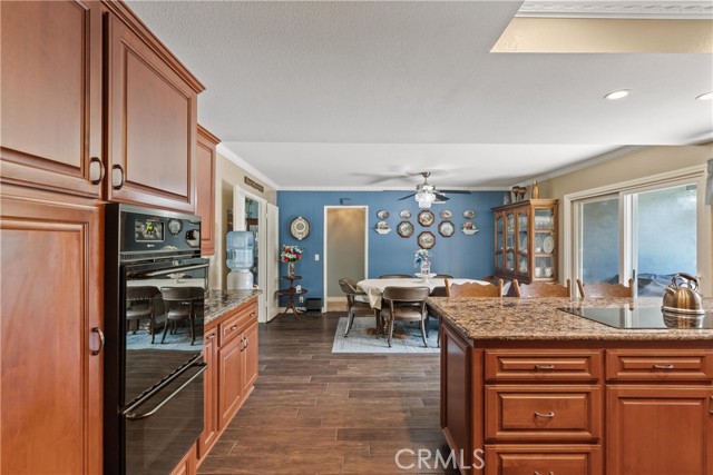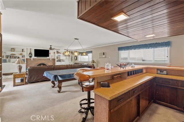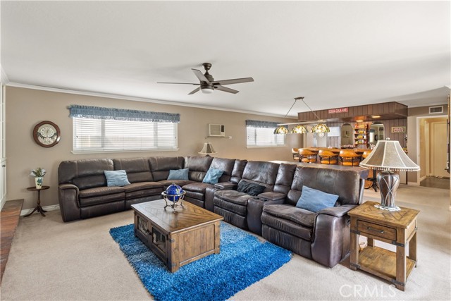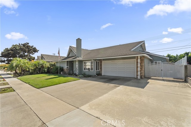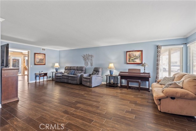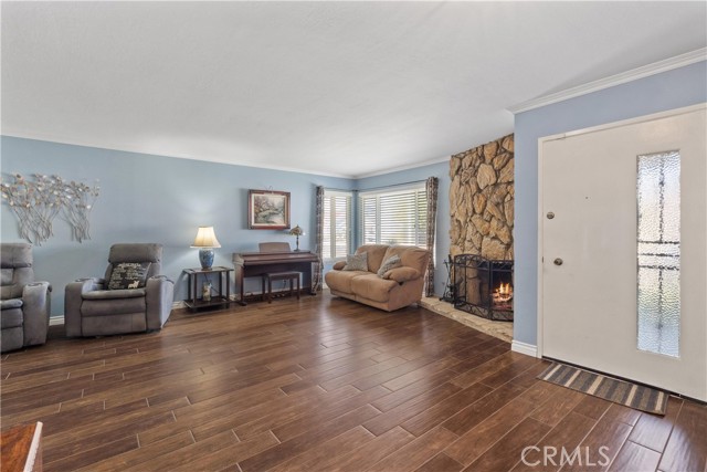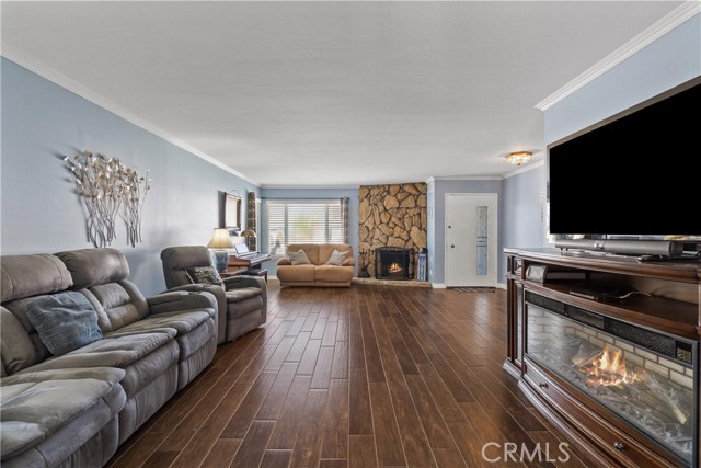 Truly a one-of-a-kind home of this size to be a single-level with tremendous curb appeal! Step inside with an inviting presence to a bright and open living room featuring wood-like floors, a beautiful stone-framed fireplace, and an elegant electric fireplace cabinet that adds warmth and charm. A wide archway leads you into the expansive kitchen, complete with granite countertops, a large peninsula with bar stool seating, abundant cabinet space, and an adjacent dining area with direct patio access—perfect for indoor-outdoor entertaining. A standout feature of this home is the enormous family/bonus room, showcasing a stylish full bar with seating for several guests, pool table setup, brick-framed fireplace, and custom built-in shelving. Located on both ends of the family/bonus room are two separate office spaces - offering flexibility for work-from-home, creative studios, or hobby spaces. An ideal layout with all bedrooms located on the left side of the home including the primary bedroom/bathroom. Other special features include central AC and heating, crown molding throughout, and direct-access 2 car garage. Enjoy the thoughtfully designed outdoor areas including a cozy patio just off the kitchen, a gazebo-covered back patio, and custom-installed turf in the backyard and side yard for low-maintenance greenery year-round - wonderful space for entertaining and enjoying time with family. An amazing location with close proximity to shops, restaurants, schools and freeways for commuters. This home truly combines comfort, function, and style in one incredible package. Don’t miss the opportunity to own this one-of-a-kind property!