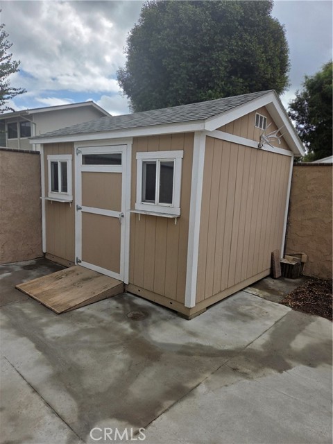 Nestled in the tranquil community of Shady Lane, this single-level home stands out among the 52 residences. Boasting a private gated entrance, you're welcomed into your corner home by a lovely drought tolerant garden. The home has two spacious bedrooms (per owner, but the bonus room could be converted into a third bedroom) and an outdoor atrium. Inside, you'll find both hardwood floors and carpeting, a warm and inviting dining space, vaulted ceilings, sky light, fireplace, and a kitchen, complete with granite countertops and a breakfast eating area lined with lovely windows. The primary bedroom features a connecting bathroom with dual sinks, a walk-in-tub and plenty of storage. The drought tolerant backyard is accessible through sliding glass doors from the living room and wraps around the property leading back to the front porch. The backyard also contains a large shed that could be used for storage or an office. Inside the two car garage, there are washer and dryer hookups and evidence of copper plumbing. This house has A/C that blows cold and is in move-in condition. The quiet community of Shady Lane features well manicured landscaping and a sparkling pool and jacuzzi. The location offers easy freeway access to the 55, 22, and 5 freeways, making commuting a breeze. There are plenty of great shopping options nearby. Another advantage of this location is being within the desirable Tustin School District, ensuring access to quality education for your family. This Santa Ana gem offers it all!