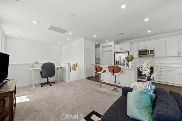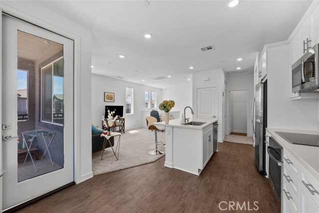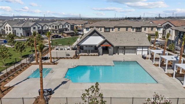 Welcome to this beautifully designed move-in ready 1-bedroom, 1.5-bathroom townhouse located in one of Ontario's most sought-after new developments. This bright and airy home offers a perfect blend of functionality and modern comfort, featuring an open-concept layout, high ceilings, and contemporary finishes throughout. The spacious main living area is ideal for entertaining, with large windows and private balcony bringing in an abundance of natural light. The sleek kitchen boasts quartz countertops, stainless steel appliances, and ample cabinet space. Upstairs, you'll find a generously sized primary bedroom with a walk-in closet and a private ensuite. A convenient half bath is located on the main floor for guests. Enjoy low-maintenance living in this newly built community with landscaped grounds. The property has Mello Roos taxes and leased solar panels. Perfect for first time buyers, professionals, or investors! Don't miss the opportunity to own in this fast-growing neighborhood, book your private showing today!