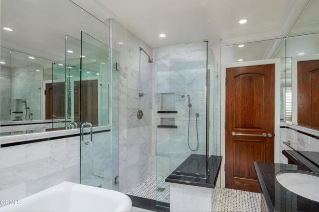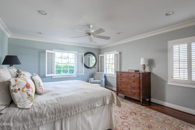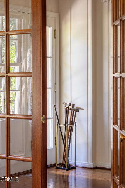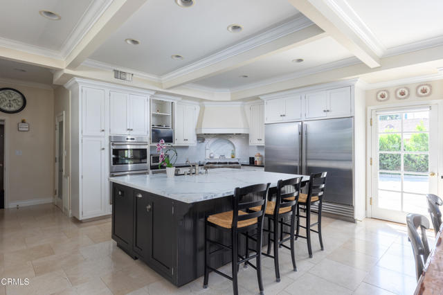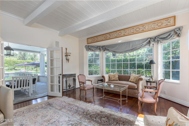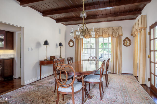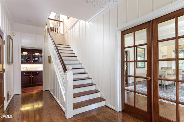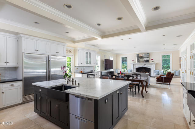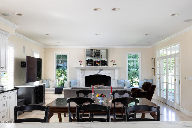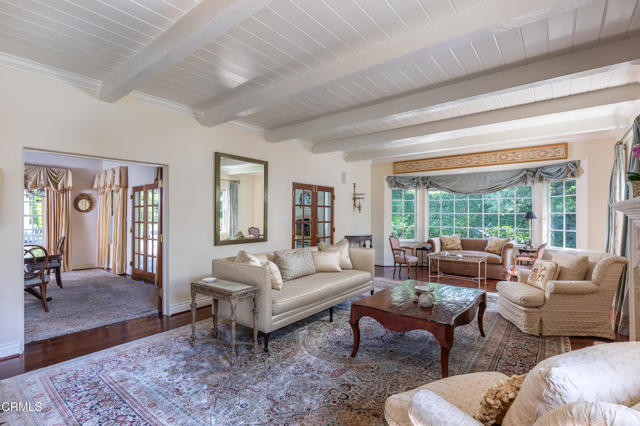 Extraordinary San Marino Monterey Colonial Estate. As you enter though the elegant wrought iron gates and continue up the horseshoe driveway, this private 1932 Monterey Colonial beauty reveals itself amongst the manicured gardens and central fountain. The formal entry reveals the generous light filled formal living room with original beamed ceilings and fireplace. Adjacent to the entry is also the intimate private library with crafted built-ins and additional fireplace. There is a formal dining room with an original stained beamed ceiling and French doors to the rear patios. The expansive chef's kitchen is epic. Surrounding the center kitchen island with its service sink, built-ins and seating, are the Wolf six burner cooktop and double ovens, Sub Zero refrigeration, multiple dishwashers, a microwave, and walk-in pantry. The adjoining great room includes additional casual dining, media area, custom built-ins, and a fireplace with access through multiple French doors to the loggia, outdoor kitchen, and pool areas. A laundry room, ensuite bedroom, and powder room complete the first level. The second level offers a relaxing lounge area that leads to the luxurious primary suite that includes dual walk-in closets and a large spa like bath. There are two additional wings on this level, each with two bedrooms and one bath for a total of six bedrooms and three baths on the upper level. The lower level of the estate includes a second more intimate media area, generous storage, a gym, and a music room for late night sessions with friends. In addition, there is a custom wet bar with wine refrigeration and racking. Back at the main level, the family, dining, and living rooms all have access through French doors to the rear yard which includes an ample outdoor entertaining space with multiple seating and dining areas, covered loggia with heaters, fireplace, custom kitchen, and bar. The nearly one-acre flat parcel is ideal for large formal celebrations to impromptu touch football games. This is a very special turn-key estate in the heart of San Marino awaiting its next owner.