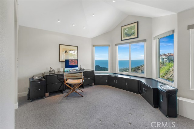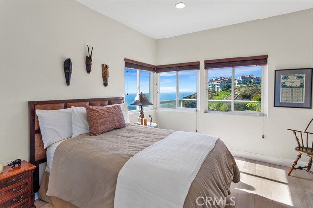Nestled in the prestigious guard-gated enclave of Laguna Sur, this remarkable home showcases the community’s largest floorplan and boasts breathtaking views of the ocean, Catalina Island, coastline, and surrounding canyons. Thoughtfully designed for both refined entertaining and everyday comfort, the home has been beautifully updated with fresh paint, wide-plank engineered hardwood floors, and a remodeled kitchen with granite countertops, custom cabinetry and modern appliances. The main level welcomes you with an expansive living area and an oversized balcony that seamlessly blends indoor and outdoor living. Downstairs, a large bonus room with its own balcony separates two generous ensuite bedrooms; the perfect retreat for family, guests, or multi-generational living. All bathrooms have been completely remodeled with elegant finishes, including a new bidet and toilet. Additional enhancements include marble-accented fireplaces, one with an electric insert, new interior doors, upscale carpeting in the primary suite and new sliding glass doors to the balcony. The home also features a built-in desk and storage, an enclosed bookcase, a newly designed walk-in closet, and a finished attic. Residents of Laguna Sur enjoy exclusive resort-style amenities including two pools, a spa, and two tennis/pickleball courts. This prime coastal location is just minutes from the Waldorf Astoria and Ritz-Carlton resorts, the El Niguel Country Club, the charm of Laguna Beach Village, the Dana Point Harbor, and a myriad of dining and shopping options in the newly renovated “Lantern District” in Dana Point. Badlands and Sea View parks are just outside the gates and offer an abundance of trails and recreational opportunities for the outdoor enthusiast.