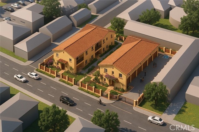 R-3 clean land, corner lot, all utilities on site, sewer connected, originally there are two houses and a garage structure on the property but been demoed in 2022; Previously fully approved for 8 townhouse Spainish-style apartments, maybe possible to add two more ADUs at the back, plans has been expired, buyer will need to update to today's code.