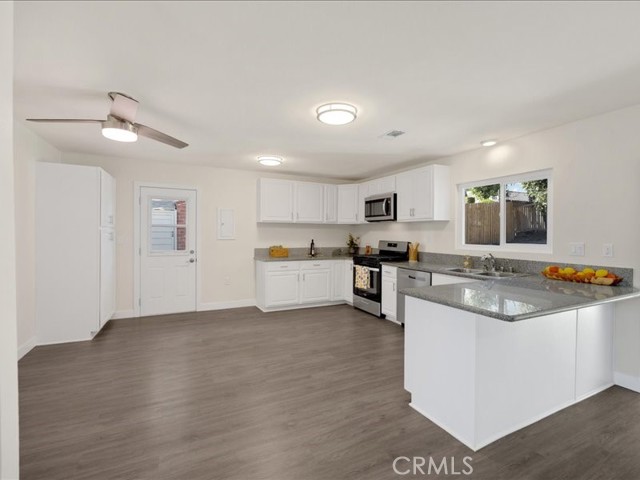 Fall in love with this beautifully remodeled, move-in-ready single-story home nestled in a desirable Rancho Cucamonga neighborhood. Featuring 4 spacious bedrooms and 2 full bathrooms, this home offers luxury, comfort, and endless potential—all on a generously sized lot with room to expand. As you step inside, you’re greeted by a large, welcoming living room that flows seamlessly into an expansive bonus room—perfect for entertaining—complete with a dual-sided fireplace just off the kitchen. The upgraded kitchen features ample counter space, new finishes, and a cozy breakfast bar—ideal for gatherings with family and friends. The home’s layout is thoughtfully designed for functionality and comfort, including a flex room near the entrance that can serve as a home office or guest room. Interior Features: • Fresh interior and exterior paint • New ceiling fans throughout • Dual-pane windows for energy efficiency • Full-size laundry room with sink and folding counter • Assumable leased solar panels for energy savings Outdoor Oasis: Step into your backyard sanctuary—a blank canvas with endless potential. Whether you dream of building a pool, tennis court, pickleball court, or even two separate ADUs, this lot can accommodate your vision. Truly an entertainer’s paradise. Prime Location: Situated near top-rated schools, beautiful parks, premier shopping centers, dining options, and recreational facilities. Enjoy the benefits of a quiet, well-established neighborhood! Don’t Miss Out – Your Dream Home Awaits! This home has it all—space, style, location, and value. Call today to schedule a private showing!