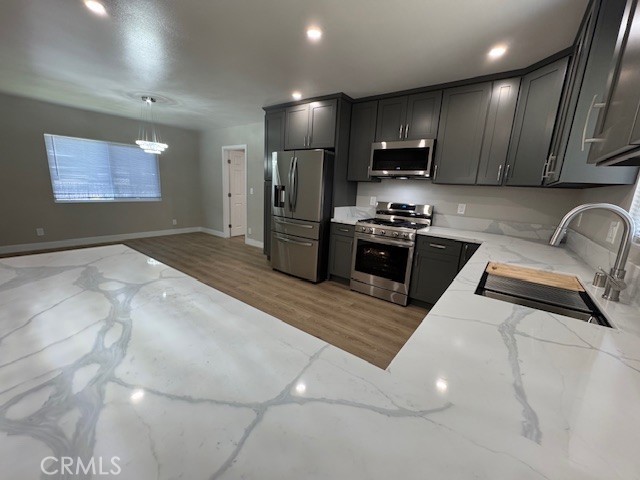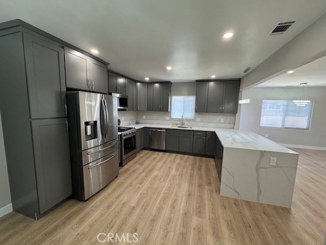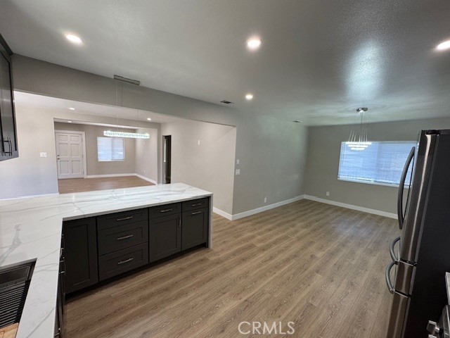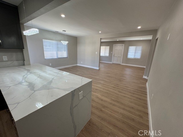 Move in ready updated home. Central Open kitchen concept allows for an owners choice of two configurations for Dining Room or Family Room / Den. The very large Primary Suite and and on suite bath are separate from the other family or guest bedrooms and bath. The home was completely upgraded with new luxury vinyl plank floors, fresh paint in and out, All cabinets, Corian counters, vanities, tile, plumbing fixtures, light fixtures, switches and outlets have been replaced. New appliances include stainless 5 burner stove, Fridge with center drawer and low decibel dishwasher. The roof was stripped to the plywood and replaced (10/25) with permits. The finished garage has room for two cars and features a new extra large garage door. The laundry room offers both gas and 220 electric. Forced Air and Heat.