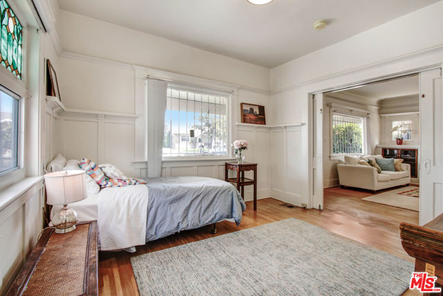 This charming 4 bedroom and 2 bath craftsman home is located one block from the historic Carnegie Library and beautiful Vermont Square Park. The home has wonderful original craftsman detail. The living room and dining room have high vaulted ceilings and large windows that bring in terrific natural light. There is a classic front sitting porch and yard for hanging out and sipping iced tea, and a large back yard with a fruit bearing tangerine tree. The kitchen is spacious with an adjacent laundry room. There is central heat and air conditioning. The attic is quite large with windows, and seems to have been created as an option to have a second story living space (buyer would need to verify possibility independently). The home is located close to local schools, just over one mile from the L.A. Coliseum, University of Southern California, Exhibition Park Stadium, 3 miles from downtown Los Angeles, and only 10 miles to beautiful beaches and the Los Angeles International Airport.
