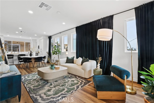 New construction townhome in a gated community by Bonanni Development in Stanton. Located close to Rodeo39 and the 22 Freeway off Beach Blvd. This is a quiet location that has a view to the community park amenity. The townhome has 3 bedrooms and 3.5 bathrooms, with one bedroom and full bathroom on the entry level. Plus a two car, side by side garage. Everyone loves the great room design with a wonderful private deck. Beautiful kitchen with large island, quartz countertops and stainless steel appliances. This home is priced to sell for an end of the year move-in! Built with state-of-the-art technology, high speed wiring throughout, plus new appliances, cabinets and flooring. This gated community will have three unique parks for homeowners to enjoy. SOLAR PANELS INCLUDED in price pictures are of model home