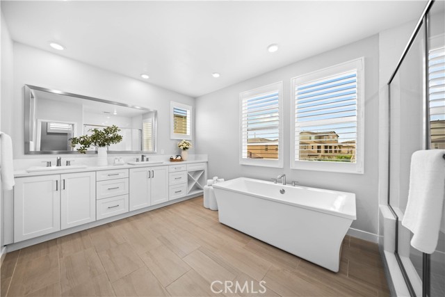Beautiful Corner-Lot Home in Great Park Neighborhoods This stunning two-story corner-lot home features 4 bedrooms, 3 bathrooms, a versatile bonus room, and a two-bay garage. The open-concept living and dining area connects seamlessly to a gourmet kitchen with a walk-in pantry, large center island, quartz countertops, GE Café appliances (including refrigerator), and ample cabinetry. A downstairs bedroom and full bath offer great convenience for guests. Upstairs includes two secondary bedrooms, a shared bath with double sinks, laundry room, and a spacious bonus room perfect for an office, media, or play space. The primary suite features dual walk-in closets and a luxurious bath with a freestanding tub and walk-in shower. Enjoy access to resort-style amenities — pools, parks, clubhouses, BBQ areas, and playgrounds — all within the award-winning Irvine Unified School District, known for its top-ranked schools and exceptional academic programs.
