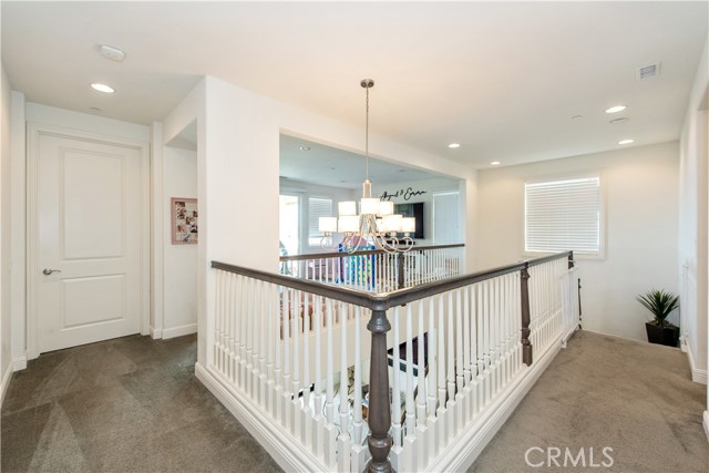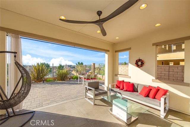 Stunning 5-bedroom home located in the highly desirable Baker Ranch community with panoramic sunset and mountain views. Step inside to find a beautifully designed open-concept main level featuring a spacious living room, dining area, and an upgraded chef’s kitchen. The kitchen is a true dream with a large center island, stainless steel appliances, modern backsplash, full-height cabinetry, and a walk-in pantry. The living room connects seamlessly to the California Room through a wall of sliding glass doors, allowing you to take in stunning city and hillside views from nearly every angle. The private backyard is designed for California living—complete with paver stone patios, a shaded pergola, and plenty of room for gatherings, outdoor dining, or simply enjoying those golden evening views. The open flow between the indoor and outdoor spaces makes this area perfect for relaxing or entertaining. The first floor also includes a private bedroom with a full bathroom, ideal for guests or multi-generational living. Upstairs, a spacious loft provides a versatile space for family gatherings, a home office, or entertainment. It opens directly onto a large covered patio, where you can unwind while enjoying the panoramic view of the surrounding hills and city lights. This level also includes the luxurious main suite, three additional well-sized bedrooms, and a conveniently located laundry room with ample storage space. The main suite is an oasis of comfort, featuring plush upgraded carpet, a massive walk-in closet, and a spa-like bathroom with quartz countertops, dual sinks, vanity area, shower with backsplash, and customized flooring. Enjoy resort-style amenities including three swimming pools, eight parks, scenic walking and biking trails, tennis courts, dog park, and a clubhouse. No Mello Roos and low HOA fees.