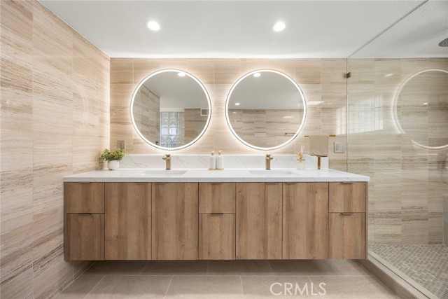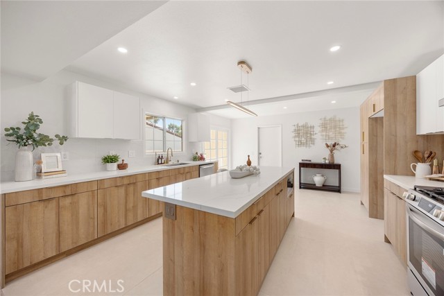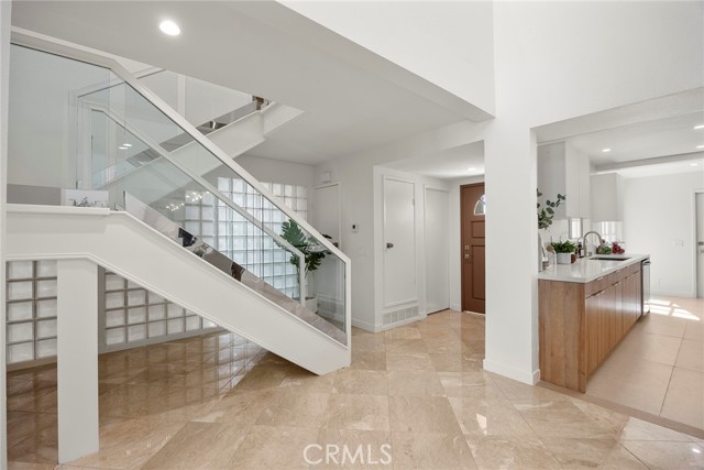 Welcome to this beautifully remodeled home in the desirable Anaheim Shores community, featuring a rare first-floor primary suite. The open layout includes a modern kitchen with a custom center island, updated bathrooms, new SPC flooring upstairs, LED lighting, and fresh interior/exterior paint. Elegant finishes include marble flooring, designer bathroom accents, and a sleek glass stair railing. Vaulted ceilings in the dining area, family room, and upstairs bedrooms add light and openness. A bonus room offers ideal space for a home office, gym, or playroom. Additional upgrades include a new HVAC system, garage door motor, and a 2-car garage. Anaheim Shores offers a private lake with walking paths, 3 pools, 3 Jacuzzis, patrolled security, well-maintained landscaping, and HOA-covered water. Conveniently located near shopping, dining, and the 5 & 91 freeways.