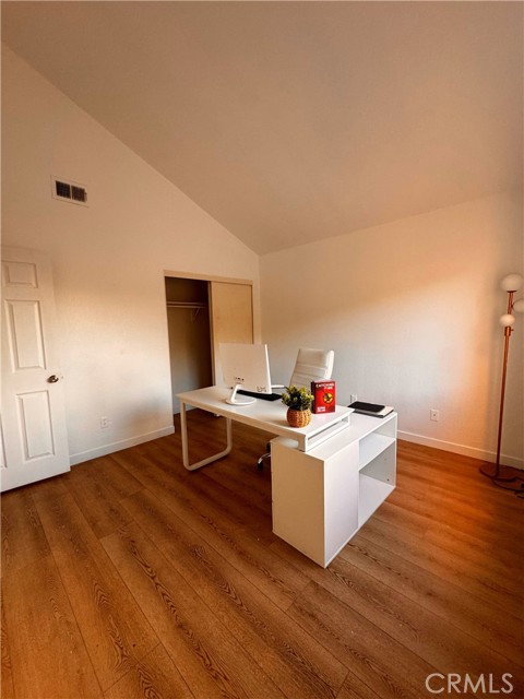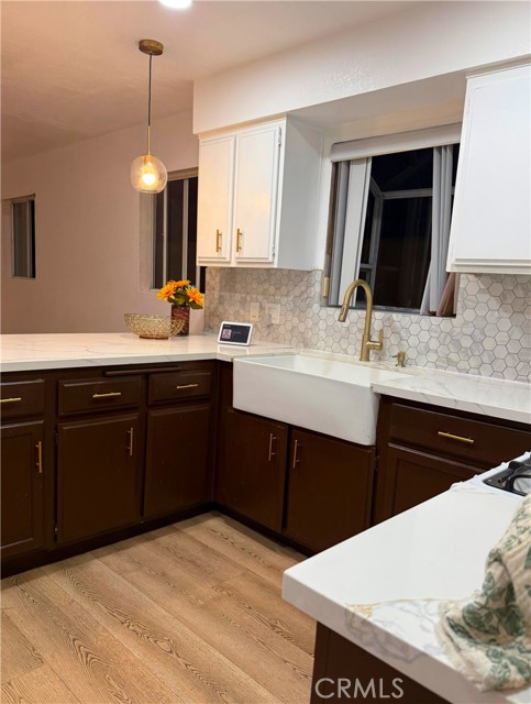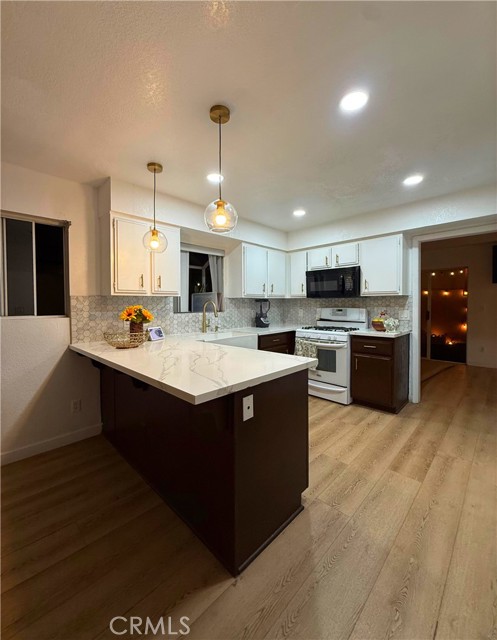 Welcome to this stunning two-story corner unit townhouse featuring 3 bedrooms and 2.5 bathrooms, perfectly combining style, comfort, and convenience. Step inside to find an inviting open layout with vinyl flooring and abundant natural light throughout. The spacious living room features a cozy fireplace and opens directly to a private patio — ideal for relaxing or entertaining under the evening string lights. The modern kitchen offers quartz countertops, elegant two-tone cabinetry, pendant lighting, and a breakfast bar with plenty of counter space for cooking or gathering. Upstairs, the main bedroom includes two walk-in closets, vaulted ceilings and a double sink bathroom. Additional highlights include an in-unit laundry area, an attached two-car garage, and a low HOA of only $315 per month. Enjoy the comfort of a well-maintained home with modern upgrades, private outdoor space, and easy access to nearby shopping, dining, and freeways. This home is located in a census tract that qualifies for a $20,000 grant and special financing through City National Bank. For qualifications and restrictions, please contact CNB loan officer Ulyses Medina at 714.225.7578 or Ulyses.medina@cnb.com