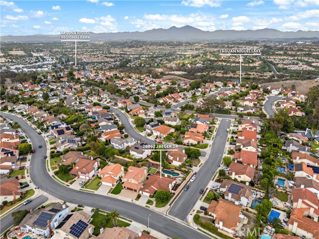 The home you've been waiting for! Located in the desirable Kite Hill neighborhood of Laguna Niguel, this rare single level home is on an expansive corner lot. Curb appeal abounds with pristine landscaping and brick accents. The stunning and private entertainers backyard features a large salt water pool and spa with a custom water feature, a built-in BBQ island and a gas fire pit with a stone facade. The open concept layout is sure to please with high ceilings, elegant flooring, recessed lighting and natural light enhanced by the french doors and bay windows. The spacious living room boasts a large fireplace accented with beautiful stone and a wood mantle and seamlessly flows to a casual dining area with built-ins for your convenience. The large kitchen which is a chef's delight is beautifully upgraded with ample custom cabinetry, stainless appliances and has a lovely dining nook which overlooks the gorgeous backyard. The huge family room has a second fireplace, an exquisite bar area and french doors leading to your outdoor space. The primary bedroom enjoys a second set of french doors leading to the pool, a large walk-in closet with convenient built-ins and an attractive bathroom with an excellent use of stone, dual sinks and a luxurious soaking bathtub. This home possesses a secondary bedroom and bathroom while bedrooms 3 and 4 are currently conjoined and used as a bedroom and an office. The luxurious aesthetic improvements will be appreciated as will the newer windows, HVAC, tankless water heater and so much more. See what makes 28862 Jaeger Drive so special! A huge bonus is being a resident of Kite Hill with exceptional amenities for a low monthly fee. A Jr. Olympic pool to swim laps in, sport courts (tennis, pickleball, basketball and sand volleyball) a tot lot and more for your enjoyment.