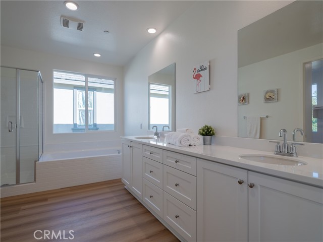 Beautiful 2020 Taylor Morrison home located in the highly desirable master-planned community of Park Place in Ontario Ranch. This nearly new home showcases a bright and modern open-concept design with functional living spaces throughout. Upon entry, you’re greeted by a private guest bedroom and full bathroom—perfect for visiting family or multi-generational living. The spacious great room flows seamlessly into the dining area and an upgraded island kitchen with a large walk-in pantry. Adjacent to the kitchen, a versatile flex room offers the ideal space for a home office, playroom, or entertainment area. The open gathering room extends to the covered California Room and landscaped backyard, creating the perfect indoor-outdoor flow for everyday living and entertaining. Upstairs features a cozy loft, ideal for movie nights or reading, along with a luxurious primary suite boasting oversized windows, a soaking tub, separate shower, dual sinks, and an expansive walk-in closet. Residents enjoy resort-style amenities including a pool, spa, gym, tennis and basketball courts, playground, dog park, and the impressive 14,500 sq.ft. Parkhouse clubhouse with theater and gourmet kitchen. Conveniently located near shopping, dining, parks, schools, and major freeways—this move-in ready home combines modern comfort with community lifestyle.