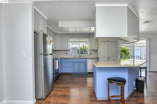 Spacious and beautifully updated 1,400 sqft double wide manufactured home featuring an open and inviting floor plan. Enjoy a modern kitchen with updated cabinetry, stainless steel appliances, and a large breakfast bar perfect for entertaining. The bright living and dining areas offer plenty of natural light and new flooring throughout. Additional highlights include central air/heat, an in-unit laundry room, ample storage, and a private covered patio—ideal for relaxing outdoors. Located in a well-maintained community with amenities such as a clubhouse and pool, and conveniently close to shopping, dining, and transit. Turn-key and ready for you to call home! Fireplaces: NO