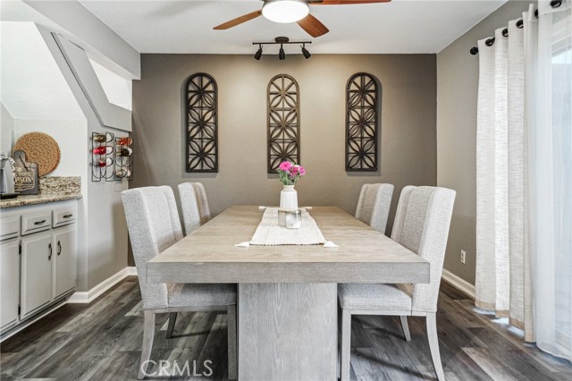 Updated Montclair Town Center Condo – Move-in Ready! Featuring 3 bedrooms and 3 bathrooms with 1,426 sq ft of living space, a large private patio, and a 2-car garage. The interior of this upgraded home includes vinyl plank flooring, textured ceilings, baseboards, and a newer HVAC system. The living room boasts a stacked stone fireplace and opens to the kitchen, which features a bar seating area, granite countertops, tile backsplash, white cabinetry, and appliances including a 4-burner cooktop, built-in oven, microwave, and dishwasher. A formal dining area and a half bathroom complete the main floor. Take the staircase with a wrought iron banister to the second floor, where you’ll find all 3 bedrooms, including the spacious primary bedroom with mirrored closets, a private bathroom, and a balcony with great views! A full-size hall bathroom serves the two secondary bedrooms. The fully fenced backyard patio is ready for the new owner's design and also provides access to the 2-car garage. Residents can also enjoy the community pool, spa, and playground. Low HOA fee and centrally located near schools, shopping, and more!