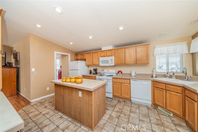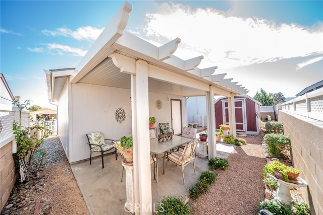 Welcome to Vista Del Rosa! This highly desirable 55+ gated community in Apple Valley is the perfect place to call home. Step inside this beautifully cared-for 3-bedroom, 2-bath home and feel the warmth right away. With vaulted ceilings, abundant natural light, wood-look flooring, and cozy carpeted bedrooms, the layout is both spacious and welcoming. The living room opens seamlessly to a formal dining area and a bright kitchen—complete with a center island, generous cabinetry, and a cheerful breakfast nook. A separate inside laundry room adds daily convenience and direct access to the garage. Your primary suite is a true retreat, featuring dual sinks, a soaking tub for relaxation, and a step-in shower. Two additional bedrooms offer flexible space for guests, hobbies, or an office with beautiful French doors. Outdoors, enjoy peaceful afternoons on your covered patio, surrounded by low-maintenance landscaping. The backyard includes a storage shed for extra space, and the extra-deep 20x22 two-car garage and ramp access make life even easier. Living in Vista Del Rosa means more than just a home—it’s a lifestyle! Residents enjoy a welcoming clubhouse, sparkling pool and spa, billiards, BBQ area, and a calendar full of fun community activities. Plus, you’ll be close to shopping, dining, medical facilities, and commuter routes for everyday convenience. Don’t miss the chance to make #118 your new home in one of Apple Valley’s finest and most inviting senior communities! Call now to schedule a tour today!!