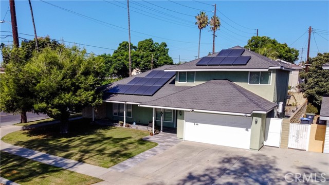 Welcome to this upgraded two-story home located in the highly sought-after Mabury Park community of Santa Ana. This residence offers 4 bedrooms, 2.5 bathrooms, and approximately 1,834 square feet of living space on a spacious corner lot. The home features numerous upgrades, including newer interior paint, updated flooring and baseboards, and dual-pane windows throughout. The formal living room is enhanced by large windows that fill the space with natural light. The kitchen offers granite countertops and flows seamlessly into the dining area perfect for everyday living and entertaining. As you walk upstairs, you’ll find the private master suite, followed by the secondary bedrooms and a full bathroom and loft on the next level. The primary suite includes a stand-up shower, while the additional bedrooms feature built-in closets and generous storage space. The hall bathroom includes dual sinks for added convenience. Enjoy outdoor living in the private backyard, complete with a sparkling pool ideal for relaxation and gatherings. Additional exterior highlights include RV access, expanded garage storage, and a paid solar system with 24 panels. Recent upgrades and features include: newer water heater, newer A/C system, updated electrical, and roof. Conveniently located near freeways, shopping centers, and dining close to Downtown Santa Ana, Old Town Tustin, and Old Towne Orange. This home also falls within the highly rated Tustin Unified School District. This is a beautifully maintained home you don’t want to miss!