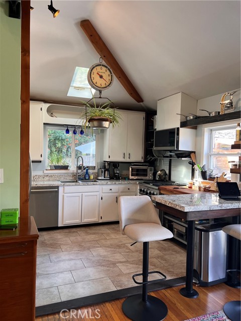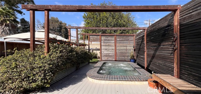 Beautifully renovated 4+1 3/4 home in the sought-after La Marina Estates neighborhood of Long Beach, CA! With 1,414 sq ft + 6,999 sq ft lot, this turnkey residence offers a rare combination of modern upgrades, timeless details, and outdoor living designed for the SoCal lifestyle. The home is centered around an open living and dining room with soaring ceilings and plenty of light perfect for entertaining. The raised ceilings extend into the newly renovated kitchen with a modern farmhouse feel, with a skylight and stainless steel appliances. Original hardwood floors, newer double-pane windows and doors, and stylish updates throughout. Guest bathroom features a clawfoot tub in and a walk-in shower with a distinctive dry sink in the primary bath. Upgrades include a tankless water heater, copper plumbing, Tesla charger, attic storage, 200-amp electrical panel with paid solar, smart locks. Recent system updates include central heating and A/C, plus a separate AC unit in the front bedroom—ideal for a wine room, office, or special-use space. A media ready setup awaits speaker hangers, mounts, wiring, and stereo cabinet in the living room. The private backyard is a retreat - a spa with updated heater, expansive deck, covered seating area, and gazebo set the stage for outdoor gatherings. Gardeners and home chefs will love the landscaped beds with rosemary, thyme, oregano, spearmint, and tomatoes. Next to the 2 car garage offers possibilities for a workshop or bar, while multiple seating areas and a gardening station complete the oasis. In front, two avocado trees and a yellow lantana bush enhance the landscaped walkway. Easy access 42’x19’ RV/boat parking, hookups, and a dump station included with extra parking space next to the garage! Located in La Marina Estates, this home is within walking distance to California State University, Long Beach (CSULB) and near Long Beach City College. Top medical centers, including Long Beach Memorial and Los Alamitos Medical Center, are close by. Enjoy recreation at El Dorado Park, El Dorado Nature Center, and El Dorado Park Golf Course, with easy access to the 405, 605, and 22 freeways; Long Beach Airport just minutes away, and both John Wayne Airport and LAX conveniently accessible. With its vaulted ceilings, farmhouse-inspired kitchen, spa retreat backyard, and RV-ready setup, this home offers the best of Long Beach living in the prestigious La Marina Estates.