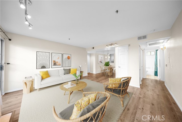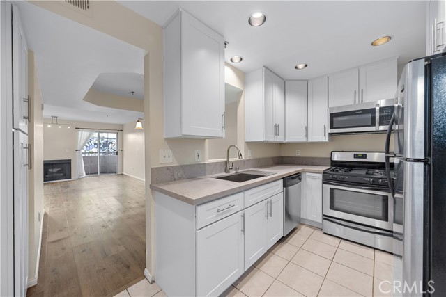 Lovely 2-bedroom, 2-bathroom condo featuring 2 dedicated tandem parking spaces, in-unit full-size laundry, and central heating and air conditioning. Designed with a thoughtful floor plan, this home offers beautiful vinyl plank flooring throughout and an open-concept living room with a gas fireplace, modern light fixtures, and double sliding doors that open to a private patio. The dining area features an architectural ceiling detail and a convenient pass-through to the kitchen. The updated and functional kitchen includes ample cabinetry, quartz countertops, an oversized stainless-steel sink and appliances, a pantry, and a cozy breakfast nook overlooking the tranquil courtyard. The primary suite features a large walk-in closet and a beautiful en-suite bathroom with a quartz vanity, shower/tub combo, and tile flooring. The nicely sized second bedroom offers pleasant courtyard views, a double-slider closet, and convenient access to additional hallway storage and a remodeled full bathroom. Additional highlights include extra storage space, a pet-friendly and controlled access building, a lushly landscaped courtyard with a fountain, a rooftop deck perfect for enjoying California sunsets and Fourth of July fireworks, a community room, and secure bike parking. Located in the heart of downtown Long Beach, you’ll be just moments from Pine Avenue, Shoreline Village, The Pike, the Aquarium of the Pacific, the Metro, and enjoy easy freeway access for commuting. Monthly HOA dues of $434 include water, trash, and sewer. Photos have been virtually staged. Building is VA approved. ****This home may qualify for special financing and a $20,000 grant - speak to your lender or Realtor to learn more.****