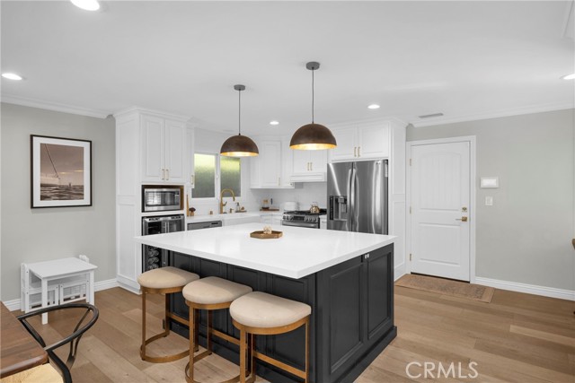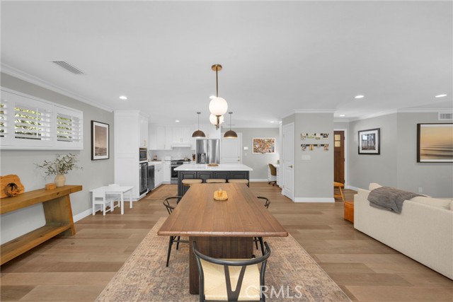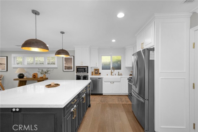 Tucked at the end of a tree-lined street, you’ll find the one you’ve been looking for. Located in the highly sought-after neighborhood of University Park Estates, this beautifully remodeled home blends comfort, style, and convenience—just 0.4 miles (an easy 8-minute walk) from CSULB and ideally situated between Pacific Coast Highway and 7th Street. Inside, the open-concept layout welcomes you with abundant natural light and thoughtful upgrades throughout. The chef-inspired kitchen serves as the heart of the home, featuring a large quartz-topped island with seating and storage, custom cabinetry, a classic subway tile backsplash, a dedicated beverage cooler, modern stainless-steel appliances, and a convenient work nook. The kitchen flows seamlessly into the dining and living areas, creating an inviting space for both everyday living and entertaining. Every double-pane window is dressed with elegant plantation shutters, adding timeless charm and energy efficiency. Sunlight fills the main living areas through dual sliding glass doors that open to a serene outdoor retreat—perfect for gatherings or quiet evenings at home. Enjoy a built-in barbecue island with a mini refrigerator, dine al fresco on the covered patio, play in the backyard, or relax around the built-in firepit under the stars. The primary suite is a true sanctuary, bathed in morning light from south-facing windows. Custom built-ins provide ample storage, while the expansive walk-in closet—converted from the home’s original fourth bedroom—offers generous space for an extensive wardrobe. The remodeled primary bathroom features a dual-sink vanity and a sleek glass-enclosed shower with modern finishes. The hallway bathroom is equally impressive, offering a dual-sink vanity and a glass-enclosed tub/shower combo accented with classic subway tile—perfect for guests or family. Additional upgrades include a tankless water heater, a Tesla car charger, and a fully finished garage equipped with a modular shelf storage system—offering both function and organization. All of this is located just moments from dining and shopping in Belmont Shore, with easy access to major freeways for a convenient daily commute.