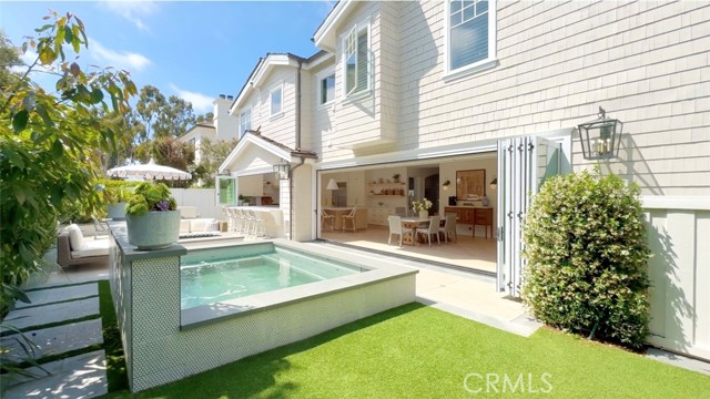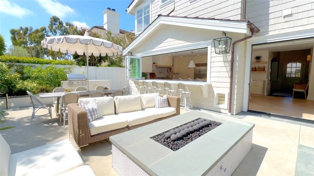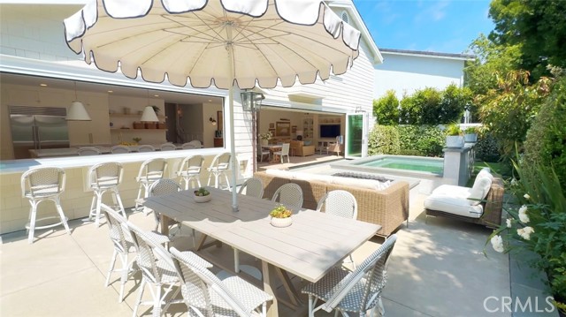 This beautifully updated Cape Cod–inspired home blends timeless elegance with the casual sophistication of coastal living. Offering five bedrooms, a bonus room, and four full bathrooms, the residence is designed for both comfort and effortless entertaining. A welcoming front veranda sets the tone for the home’s classic curb appeal, leading into a formal entry and living room filled with natural light. Beyond, the open-concept great room features a gourmet kitchen with a large center island, high-end appliances, La Cantina retractable windows with indoor/outdoor serving counters, and an adjoining family room and dining area with La Cantina retractable doors, all flowing seamlessly to the lush backyard. The outdoor space offers a fireplace, mature landscaping, grassy play area, and a private spool, creating a perfect setting for gatherings year-round. A downstairs bedroom and full bath provide flexibility for guests or a home office. Upstairs, the spacious primary suite includes a fireplace, custom built-ins, a luxurious spa-like bathroom, and an expansive walk-in closet. Three additional bedrooms, a large bonus room, and a convenient upstairs laundry room complete the second floor. Ideally located just moments from Andersen Elementary, community parks, and the neighborhood pool and greenbelts, this home offers the best of the Port Streets lifestyle—a welcoming community in the heart of Newport Beach.