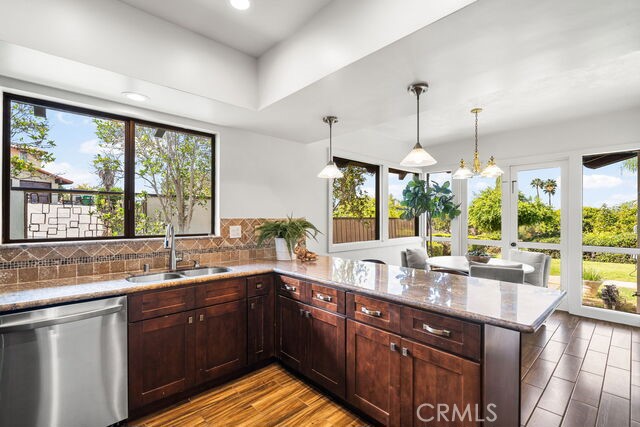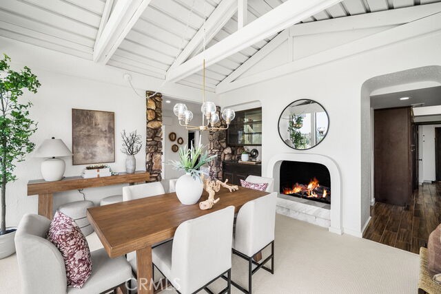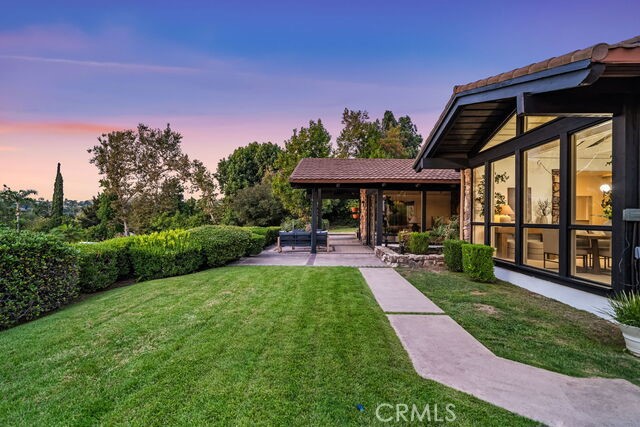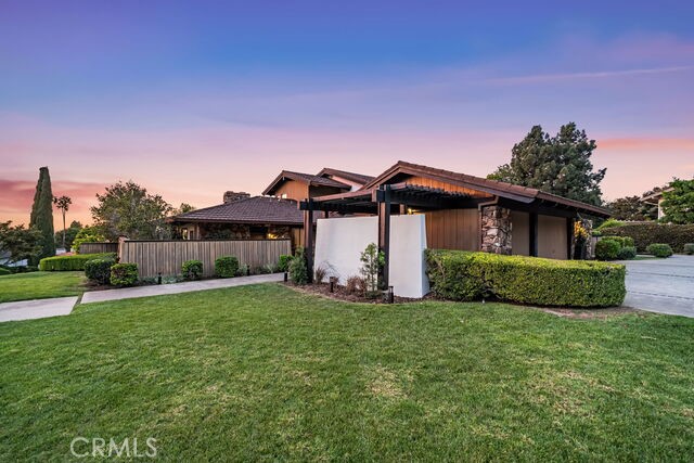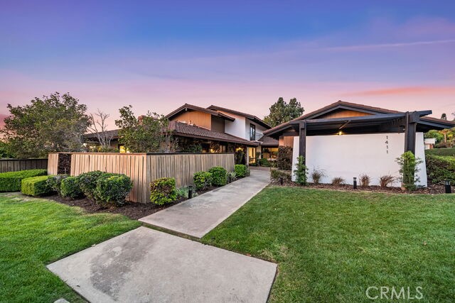 Welcome to 1411 Faren Drive, a custom Mid-Century Modern retreat in the hills of Lemon Heights where timeless design meets modern comfort. Walls of glass frame breathtaking city light views, filling 4,221 sq. ft. of living space with natural light and effortless indoor-outdoor flow. Recently refreshed with crisp new interior paint and sleek LED recessed lighting, the home feels both warm and contemporary— for today’s lifestyle. The flexible floor plan lives like a single story with 4 bedrooms and an executive office on the main level, while the entire upstairs is dedicated to a private primary suite with custom closets, spa-inspired baths, and its own living area. An oversized living room with soaring vaulted ceilings provides the perfect backdrop for grand entertaining, while the family room with entertainer’s bar invites relaxed gatherings with friends and loved ones. A formal dining room and 4 fireplaces further enhance the inviting ambiance. The chef’s kitchen is equipped with wood cabinetry, granite counters, stainless appliances, eating bar, and an inviting informal dining area. A convenient laundry and storage room is nestled behind the kitchen. Nearly every room opens to the outdoors, where multiple patios and a low-maintenance grass backyard with drought-tolerant gardens create the ideal setting for peaceful mornings, vibrant sunsets, and sparkling city-light views. All of this is within the award-winning Tustin school boundaries — Arroyo Elementary, Hewes Middle, and Foothill High — in a highly sought-after area where homes rarely become available. This home is a sanctuary of light, space, and thoughtful design in one of North Tustin’s most coveted areas.