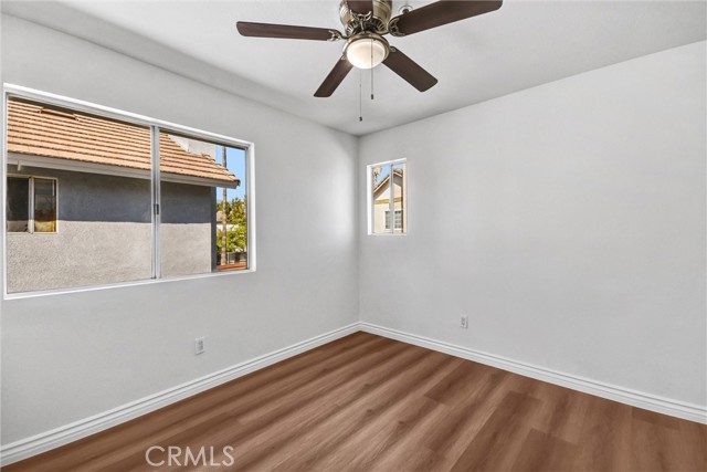 Welcome to a beautifully updated two-story home nestled on a quiet cul-de-sac in the heart of the Heritage neighborhood of Fontana. This 4-bedroom, 2.5-bathroom residence offers 1,649 sq. ft. of inviting living space on a generous 4900 sq. ft. lot. This house has been upgraded with freshly interior and exterior painting including exterior all around backyard fencing in addition to new vinyl flooring thru the steps and all the way into the second floor. Step inside to vaulted ceilings in the living room, an open floor plan with formal dining room. The kitchen offers custom shaker cabinetry with self closet drawers and doors, gleaming granite counters, stainless steel appliances including a brand new stove a travertine backsplash & middle island with extra cabinets. Kitchen opens to cozy family room with fireplace. All 4 bedrooms are upstairs. The master bedroom suite offers a walk-in closet. Master bathroom offers double sink cabinet with separate toilet, shower/tub room. Outside, the private yard is ideal for entertaining, and the front courtyard adds charm and curb appeal. Other highlights include central A/C & heating, a 2 attached car garage with lots of shelving and storage space. This house is located in the beautiful Heritage Village community with lots and lots of amenities including a clubhouse,swimming pool, basketball court, tennis court volleyball court and jogging trail, Easy access to major freeways (15 / 10 / 210), Victoria Gardens mall and top schools in the Etiwanda District. Don’t miss your chance to own this turn-key gem — see it to appreciate.