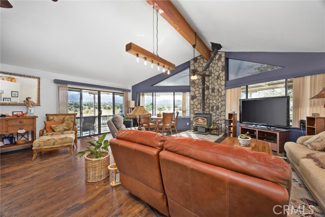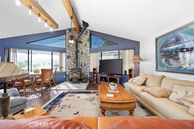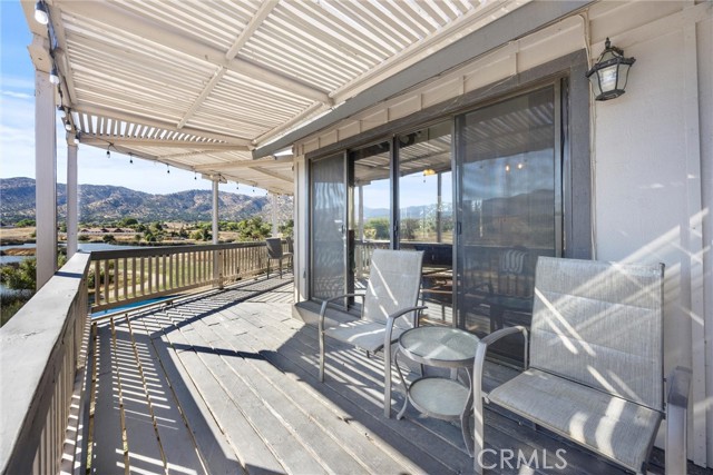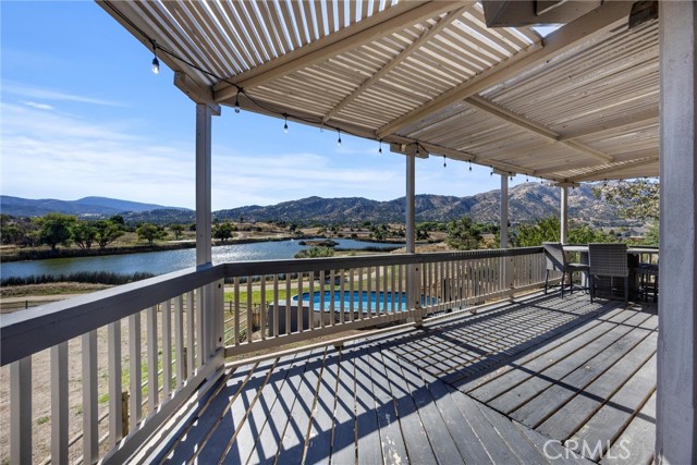 Experience the serenity of lakefront living in this exceptional Golden Hills home overlooking scenic Tom Sawyer Lake. With nearly 4,000 square feet of living space, this spacious two-story retreat offers 4 bedrooms and 5 bathrooms, including two master suites—one on the main level and another downstairs—ideal for multi-generational living or guests. Step inside to an inviting open floor plan featuring a brick fireplace, wood-beam vaulted ceilings, and panoramic lake and mountain views from nearly every room. The updated kitchen showcases granite countertops, stainless steel appliances, and warm wood cabinetry, flowing seamlessly into the living and dining areas designed for entertaining and relaxation. Enjoy an easy side entrance to the backyard, perfect for hosting gatherings and taking advantage of the outdoor spaces. The lower level opens to a large covered patio and an above-ground pool, ideal for enjoying the Tehachapi sunshine. Outside, the expansive deck provides stunning sunset views over the lake and rolling hills. With its peaceful setting, abundant natural light, and versatile layout, this property perfectly combines comfort, privacy, and natural beauty—right in the heart of Golden Hills.