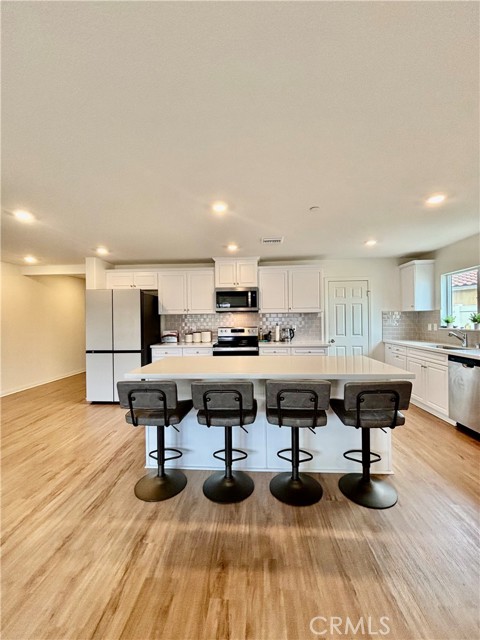 Modern Living in Cielo! Perfect home for first-time buyers! This beautifully maintained property offers a bright and spacious open floor plan that seamlessly connects the kitchen, dining, and living areas. The upgraded kitchen features quartz countertops, a modern backsplash, and a generous pantry. Enjoy a convenient laundry room with sink, laminate flooring throughout, and thoughtful touches that make this home truly move-in ready. The front and backyard are fully finished with turf, natural plants, decorative rock, and pavers—creating a stylish, low-maintenance outdoor space. The private backyard has no neighbors behind and showcases peaceful hill views, with snow-capped scenery in the winter. Quiet location, comfort, and charm all in one!
