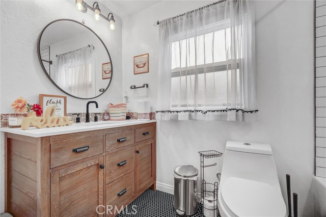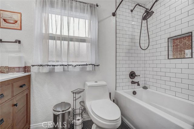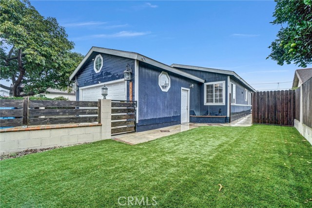 Don’t miss this beautifully remodeled 3-bedroom, 2-bathroom home offering 1,576 sq ft of stylish living space plus a 200 sq ft back house with additional bathroom—perfect for conversion to an ADU or rental unit for extra income potential! Step inside to an open-concept kitchen featuring upgraded slab countertops, recessed lighting, stainless steel appliances, abundant cabinetry, and a cozy breakfast nook. A spacious living room with a second dining area is ideal for gatherings and entertaining. Retreat to the primary suite, showcasing a remodeled luxurious bathroom with dual vanities, 8 feet of quartz counter space including a built-in makeup desk, and an oversized soaking tub with a full glass shower surrounded by designer tile. Enjoy vaulted ceilings in every room, wood laminate and tile flooring throughoutd, a new energy-efficient HVAC system, dual-pane windows, and an indoor laundry room with direct access to the 2-car garage. Outside, relax or entertain on the 200 sq ft deck overlooking easy-maintenance, drought-tolerant landscaping with artificial turf. Ask about optional flooring, kitchen, and bathroom upgrade packages that can be included in the sale of the home. Conveniently located just minutes from the beach, major freeways, top-rated schools, shopping, and dining—this home offers the perfect blend of comfort, style, and opportunity.