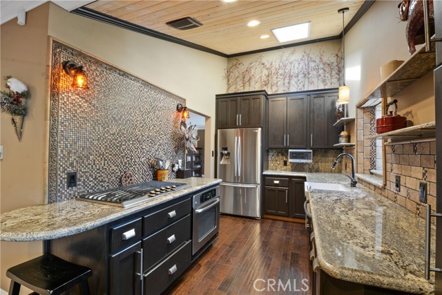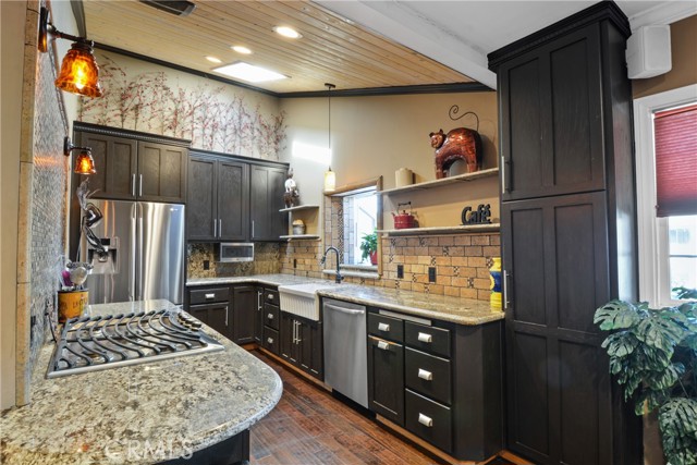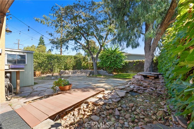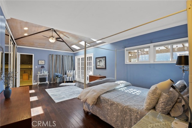 Welcome to this lovely, well-maintained corner lot home that perfectly blends timeless charm, comfort, and thoughtful updates throughout. Originally a 3-bedroom, 1-bath residence, this home has expanded it's primary bedroom which enhances both space and functionality for today’s lifestyle. Step inside to discover beautiful wood floors, a spacious living and dining area, and a large family room—ideal for entertaining—featuring a convenient built-in Murphy bed for guests. The updated kitchen showcases attractive tongue-and-groove ceilings, quartz countertops, decorative tile backsplash, updated cabinets, and a charming bay window that fills the space with natural light. The kitchen flows effortlessly into the dining and family areas, creating a warm and inviting atmosphere for gatherings. The expanded primary suite offers a serene retreat, highlighted by charming tongue-and-groove ceilings, an ensuite sitting area, and double French doors that open to a private patio—perfect for morning coffee or evening relaxation. The upgraded bathroom features elegant tile and travertine accents, a separate soaking tub, and a walk-in shower. Throughout the home, skylights brighten living areas and add to the open, airy feel. Additional highlights include an inside laundry/utility room, newer built-in cabinets in the garage for extra storage, and stunning exterior touches such as a brick walkway in the front and paver accents in the backyard. Lovingly cared for and thoughtfully maintained, this beautiful corner home is ready to welcome you to its next wonderful chapter.